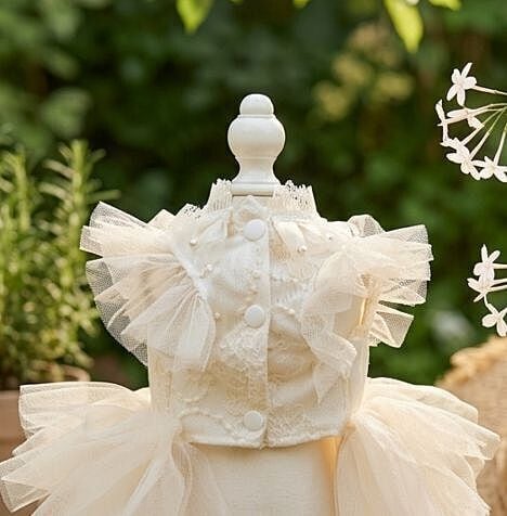 首元はフリルとレースで上品に仕上げ、