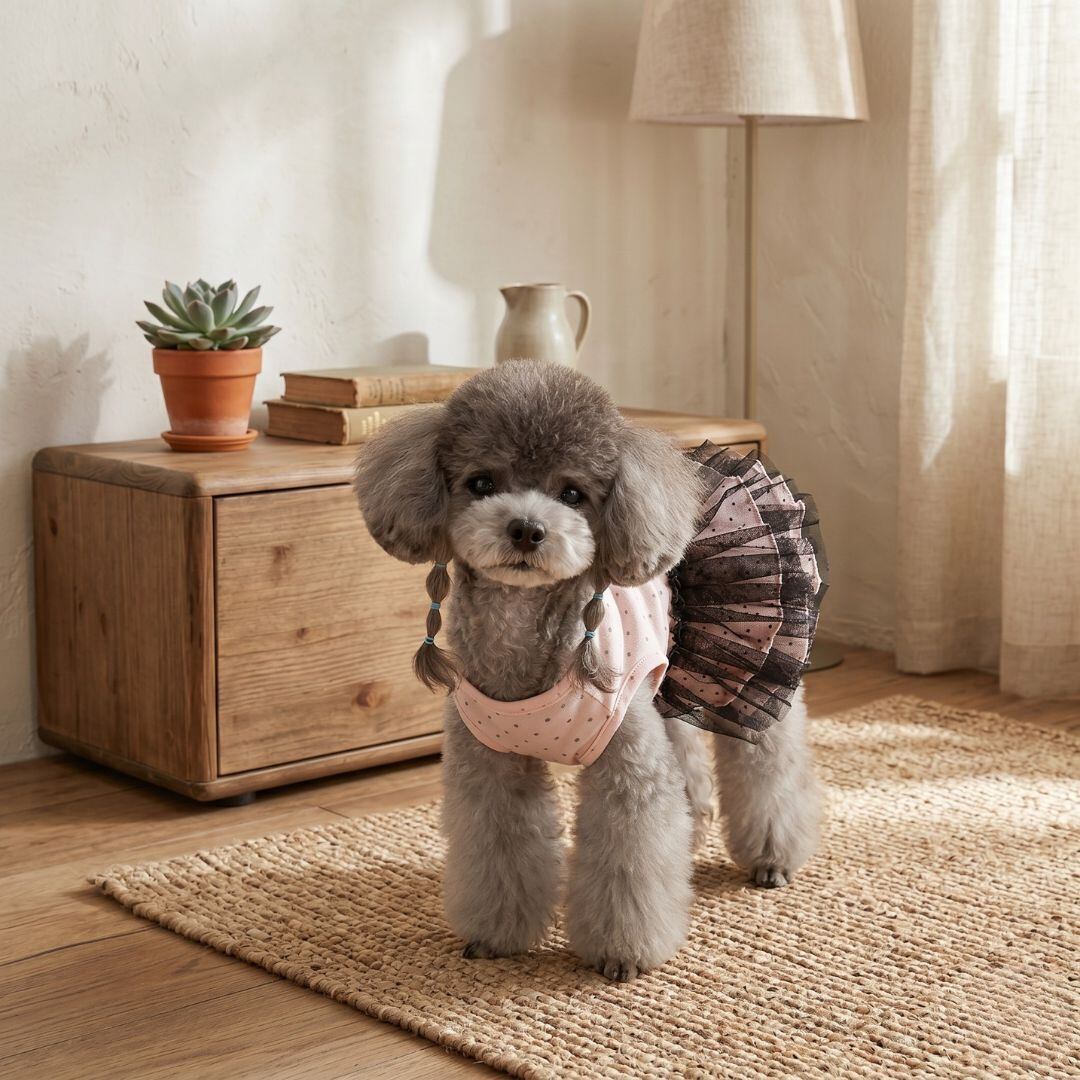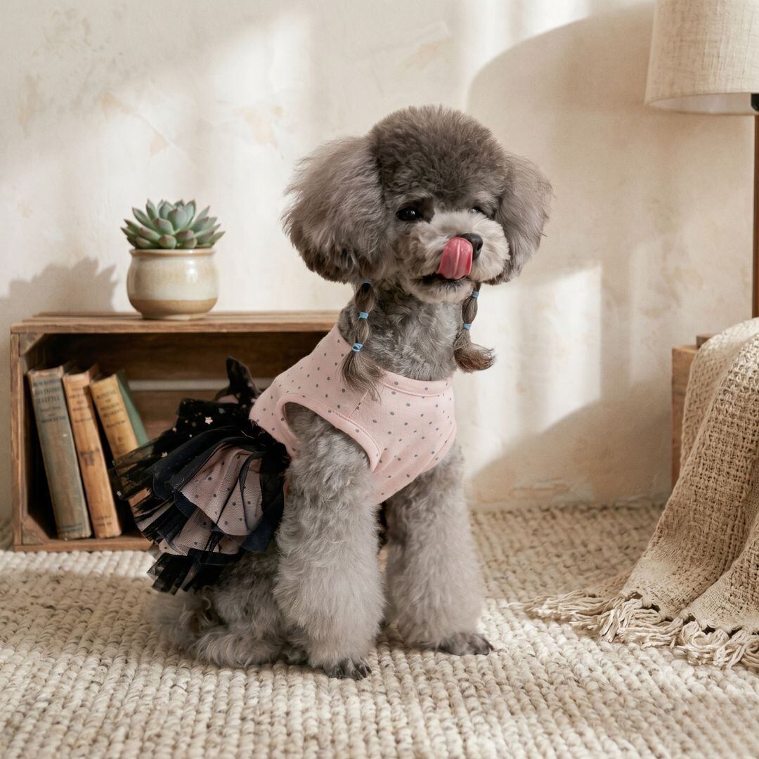 やさしいピンクカラーに上品なドット柄を