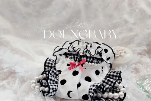 予約・即納【№B00017】Doung Baby 春夏秋 ①ポルカドット くまビジューワンピ②ポルカドット ドッド ティアードフリルワンピ