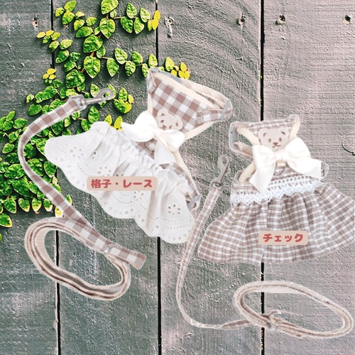 予約【№E00104】クマモチーフ ワンピ型ハーネスリードセット 2タイプ