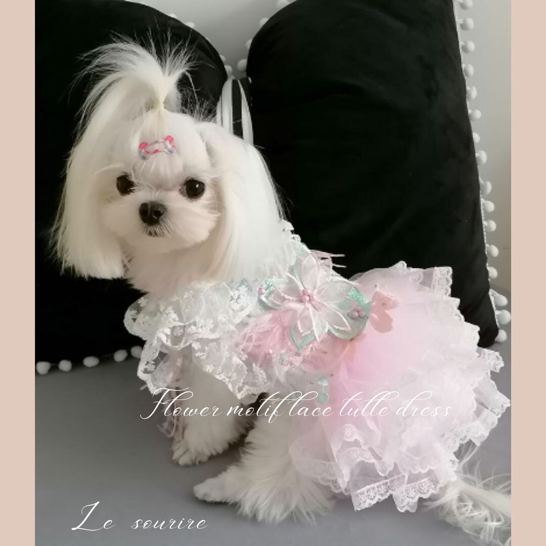 予約(海外ハンドメイド)【№B00230】春夏 Flower motif lace tulle dress