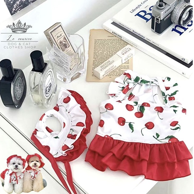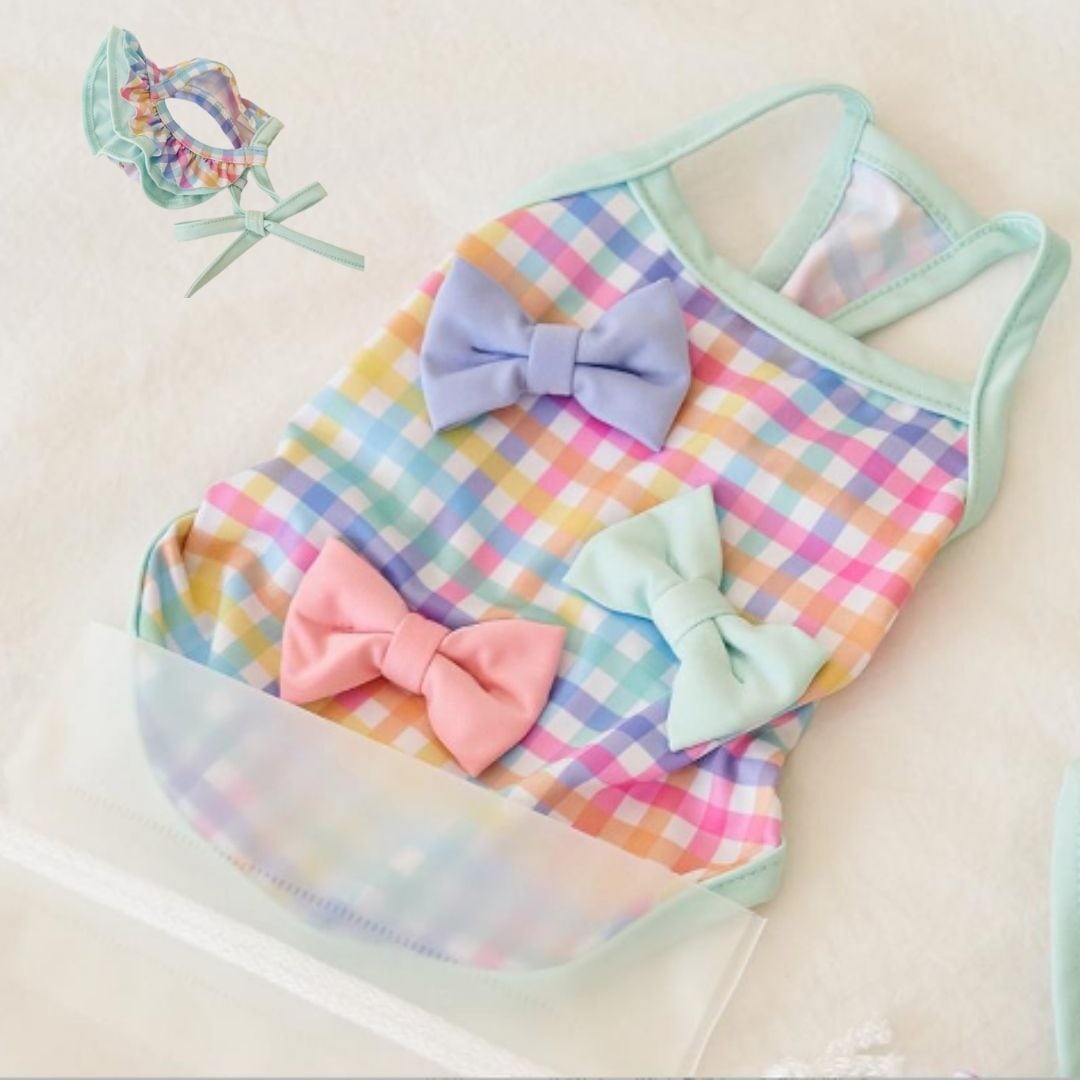 在庫限り【№E00295】ペット 犬 猫 水着(クロップド丈・ワンピース)サングラス:オプション