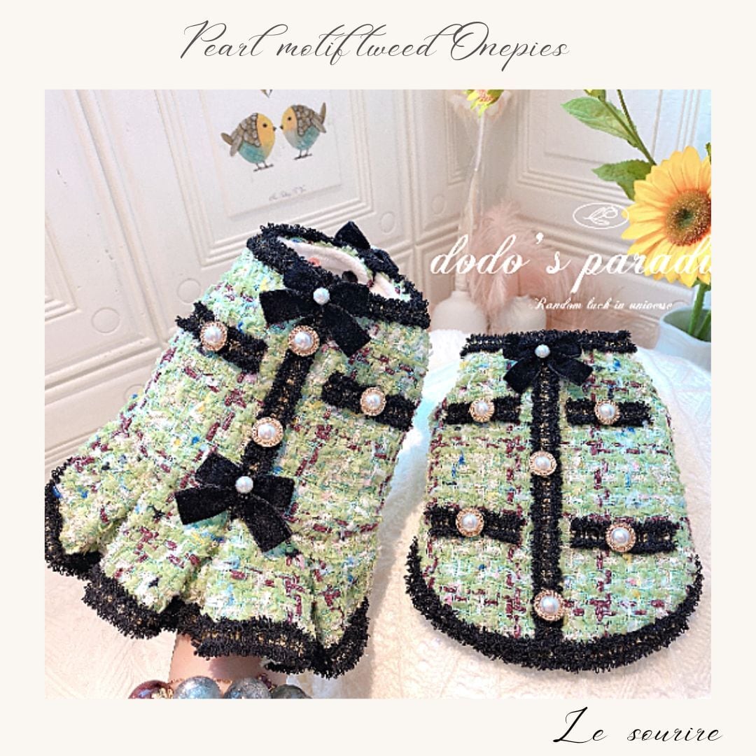 予約(海外ハンドメイド)【№B01214】パールモチーフ ツイード ワンピース
