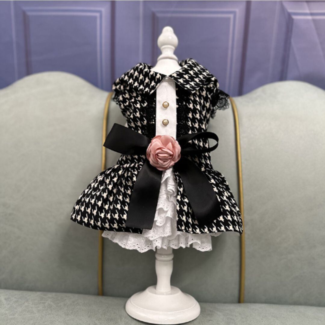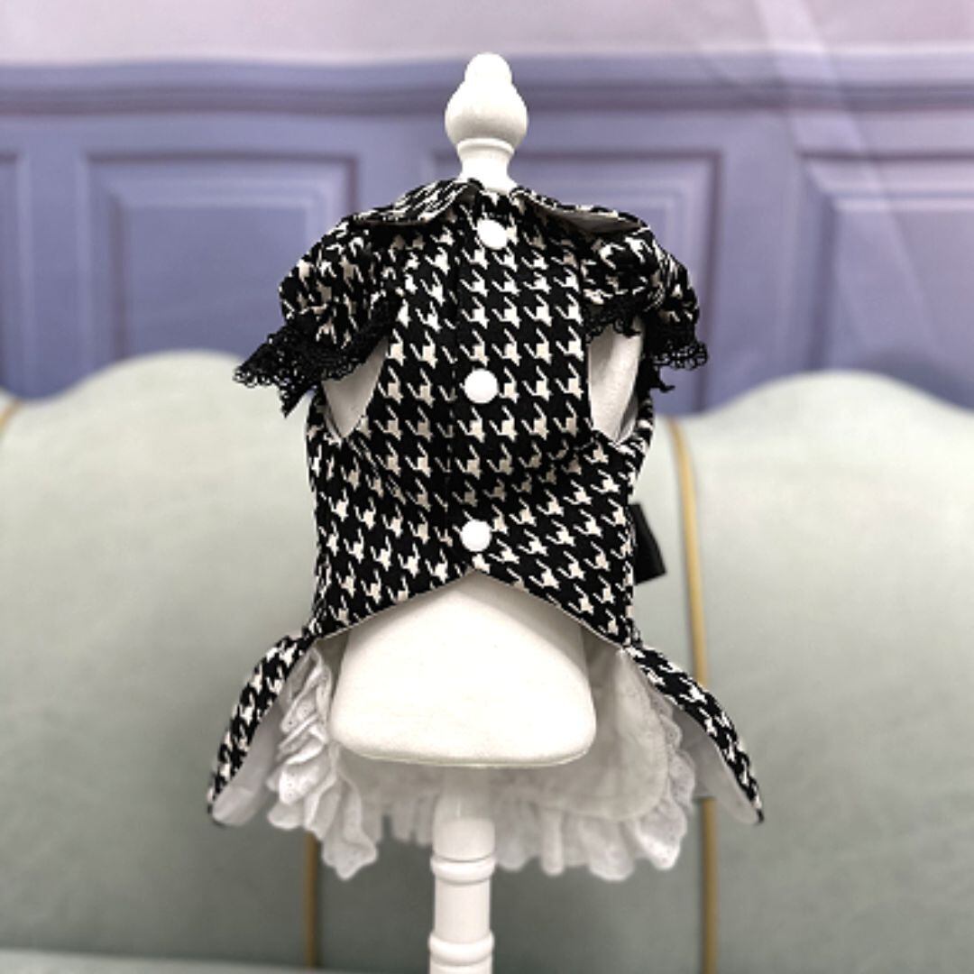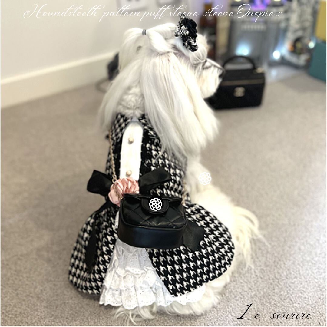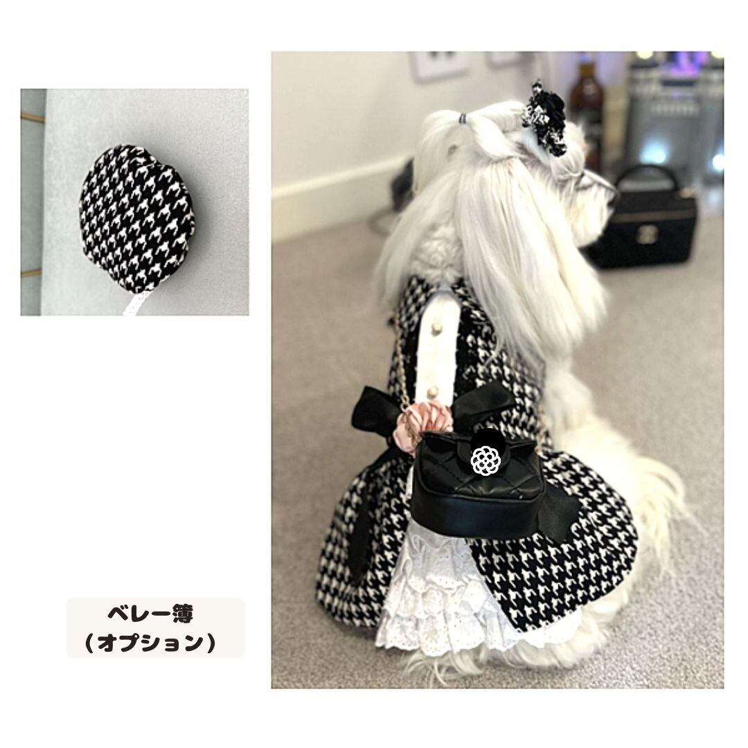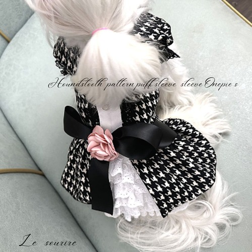 予約 海外ハンドメイド【№B01363】千鳥柄 パフスリーブ袖 ドレス(ベレー帽:オプション)