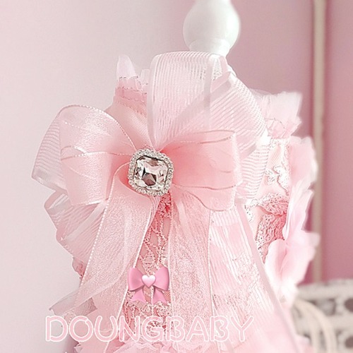 予約(海外作家ハンドメイド)【№B01413】Doung Baby エレガントフラワー プリンセスドレス(ヴェールなし)2way