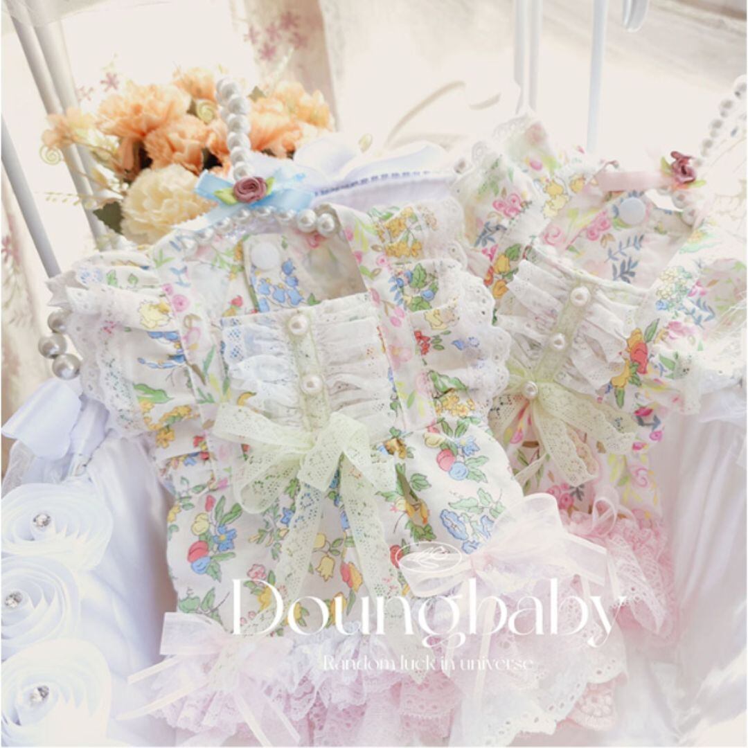 予約(海外作家ハンドメイド)【№B01581】Doung Baby お花柄 レース プリンセスドレスワンピ