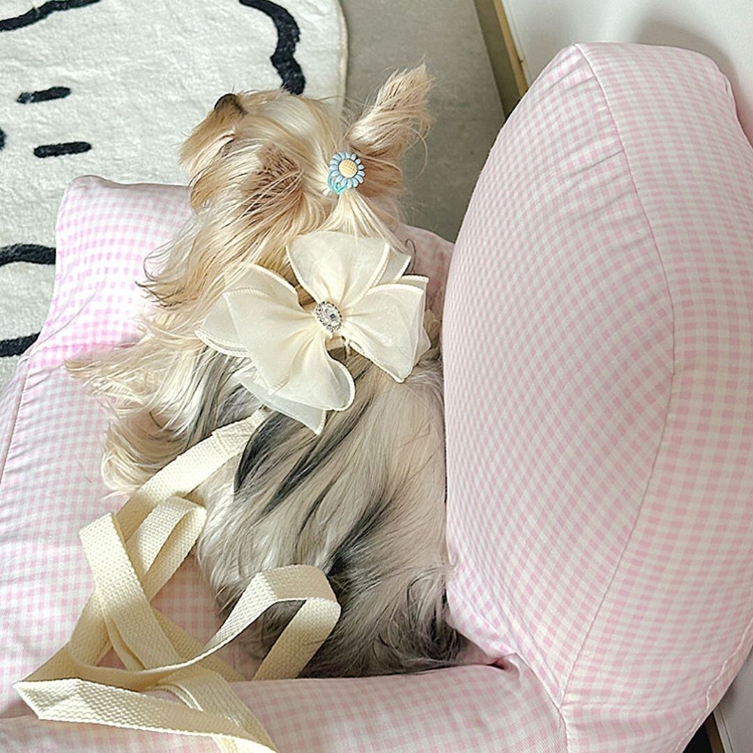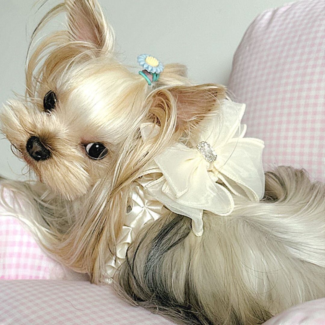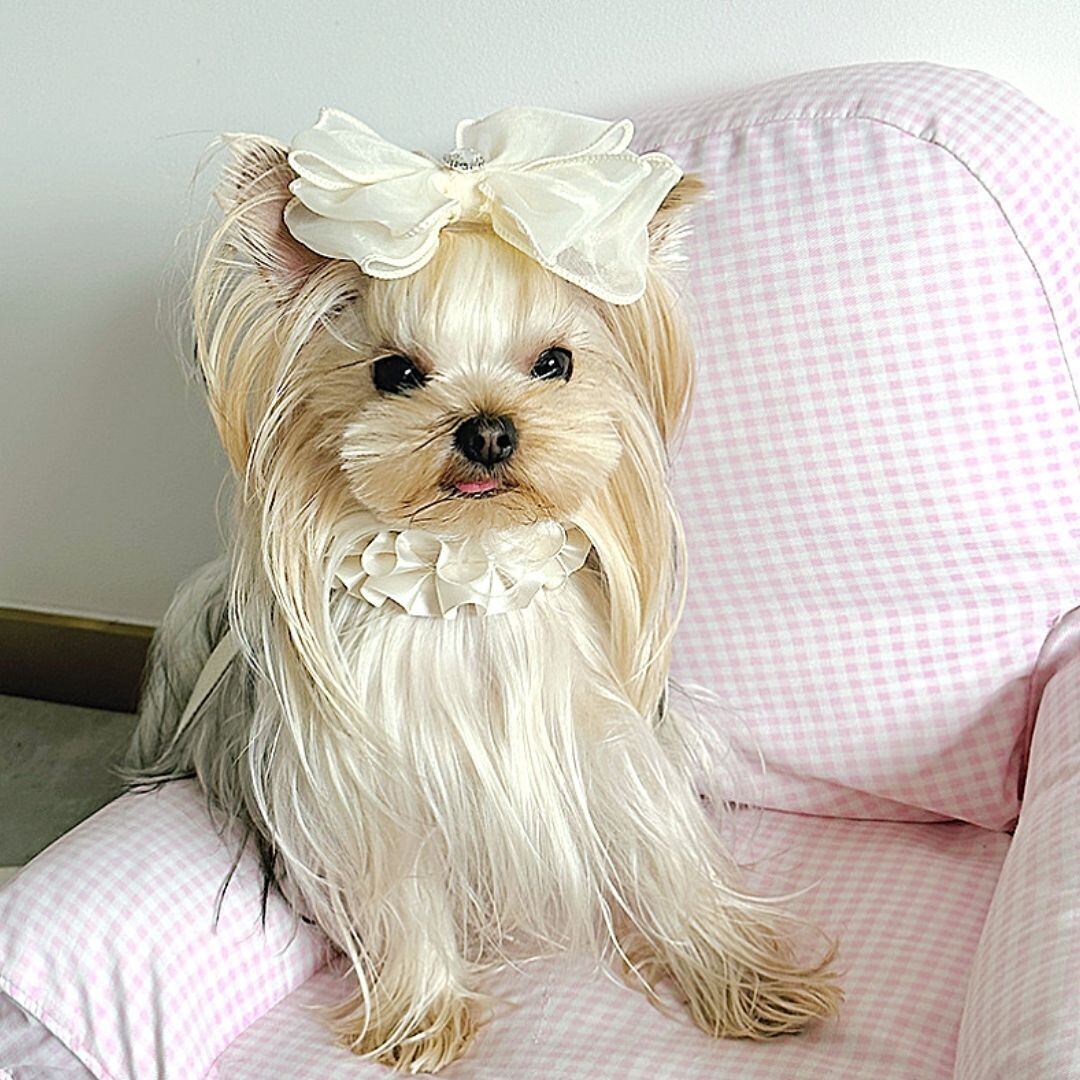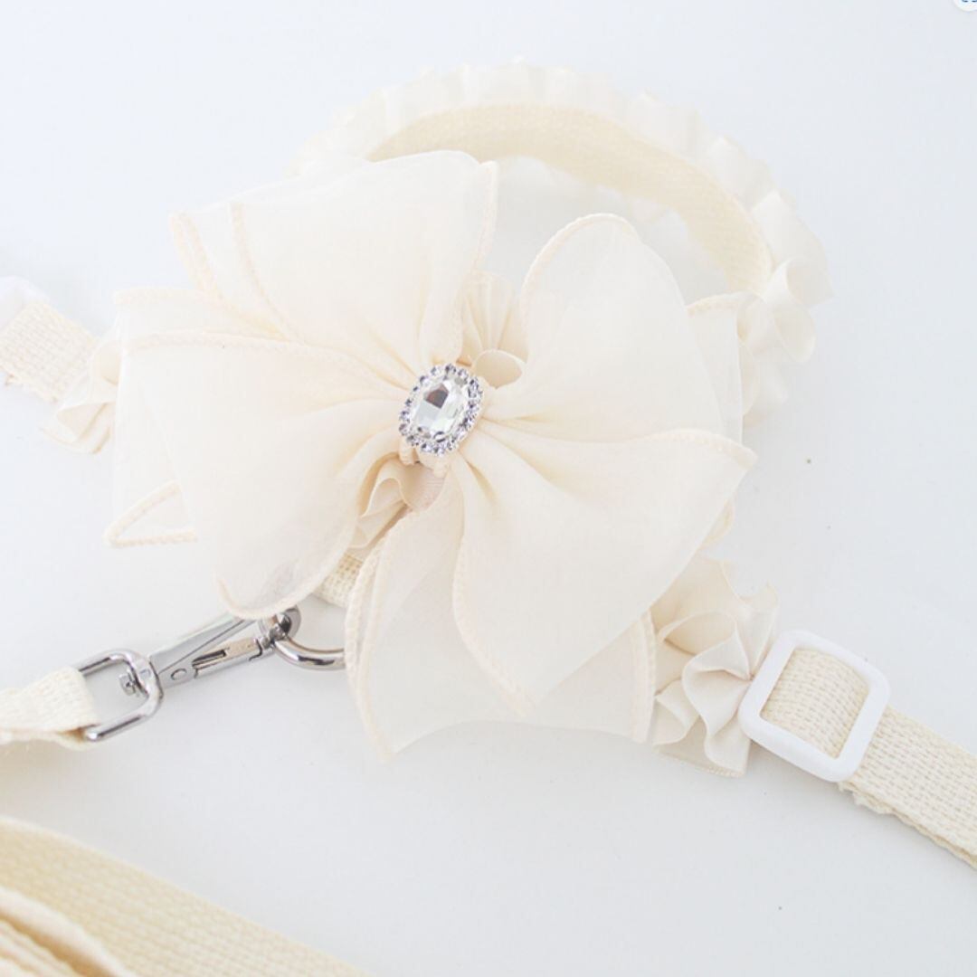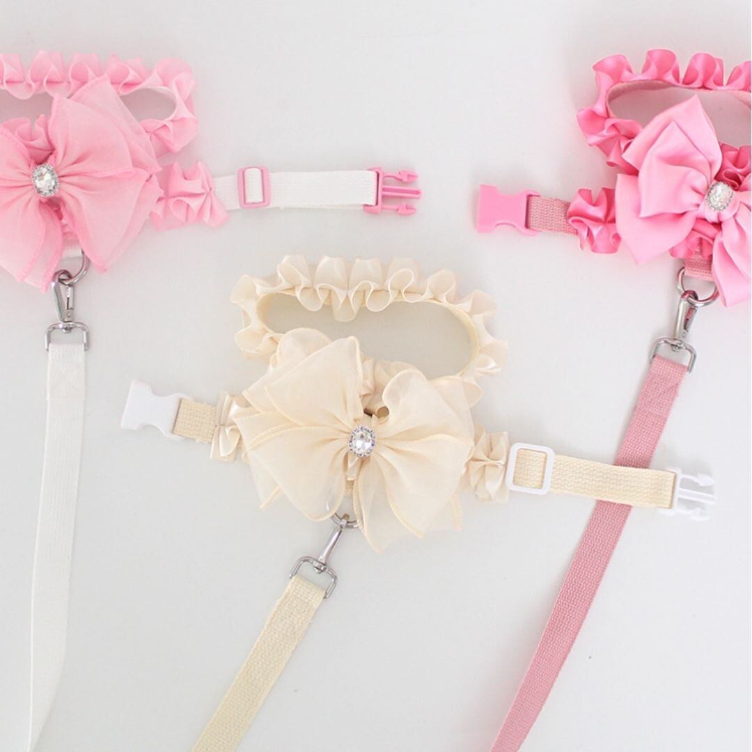 予約【№B01668】ビジューリボン ふりふりサテン ハーネスリードセット