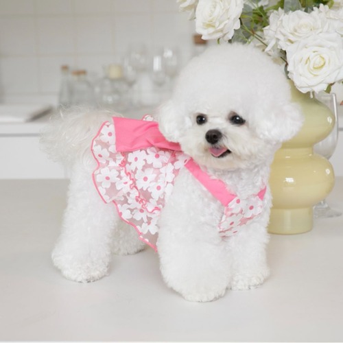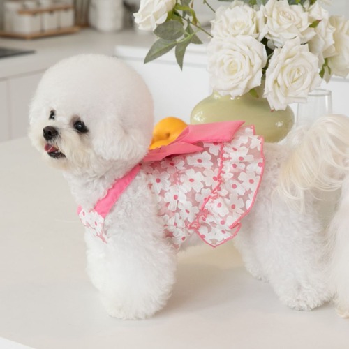 予約【№B01798】フラワー柄 ビッグリボン リード金具付きワンピ