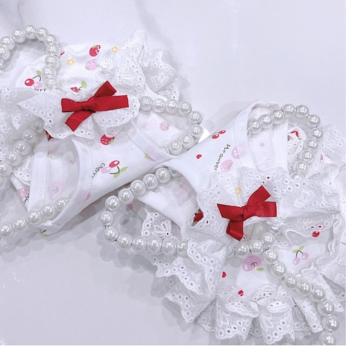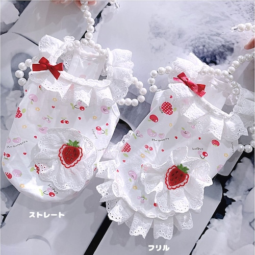 予約・即納【№B01905】いちごモチーフ&フルーツ レースラッフルワンピ