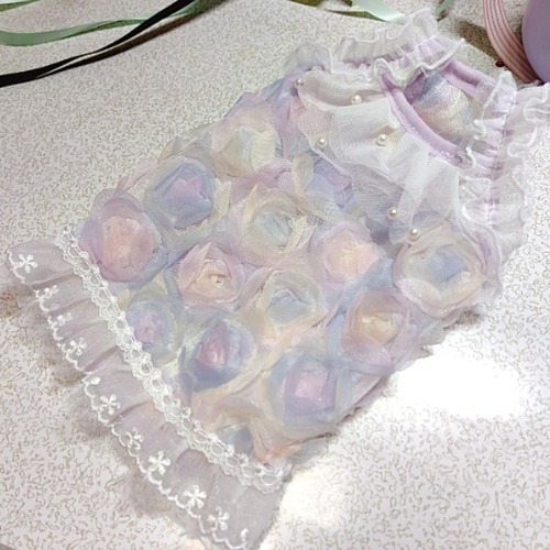 予約(海外ハンドメイド)【№B01910】フラワーモチーフ&パール チュチュドレス