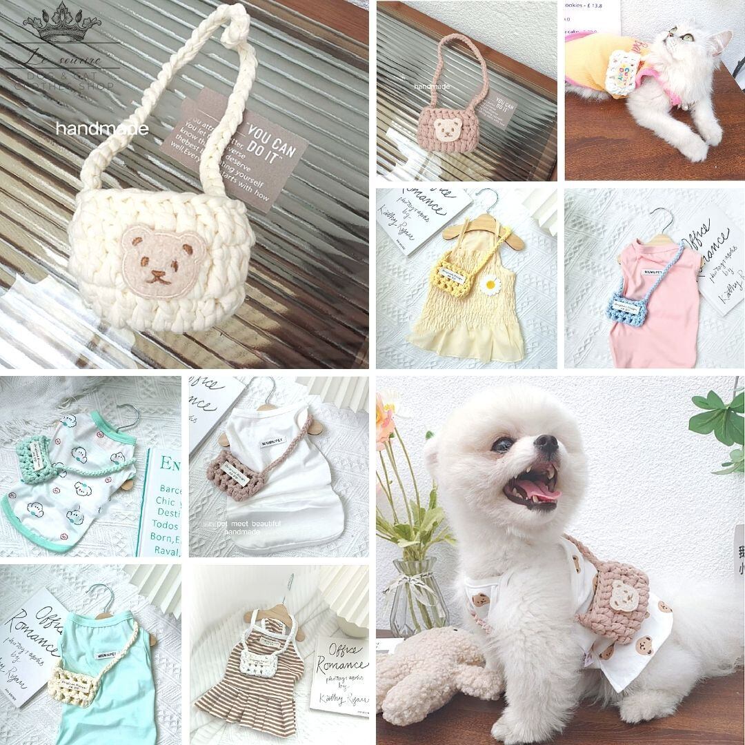 予約 海外ハンドメイド【№B01767】犬猫 斜め掛けポシェット 編み込み 全9種類 撮影小物