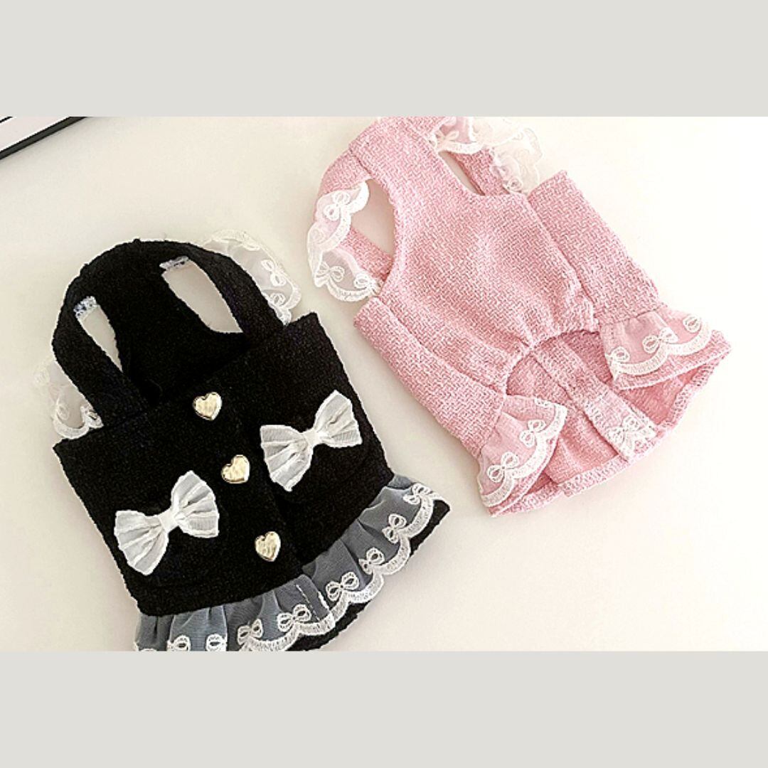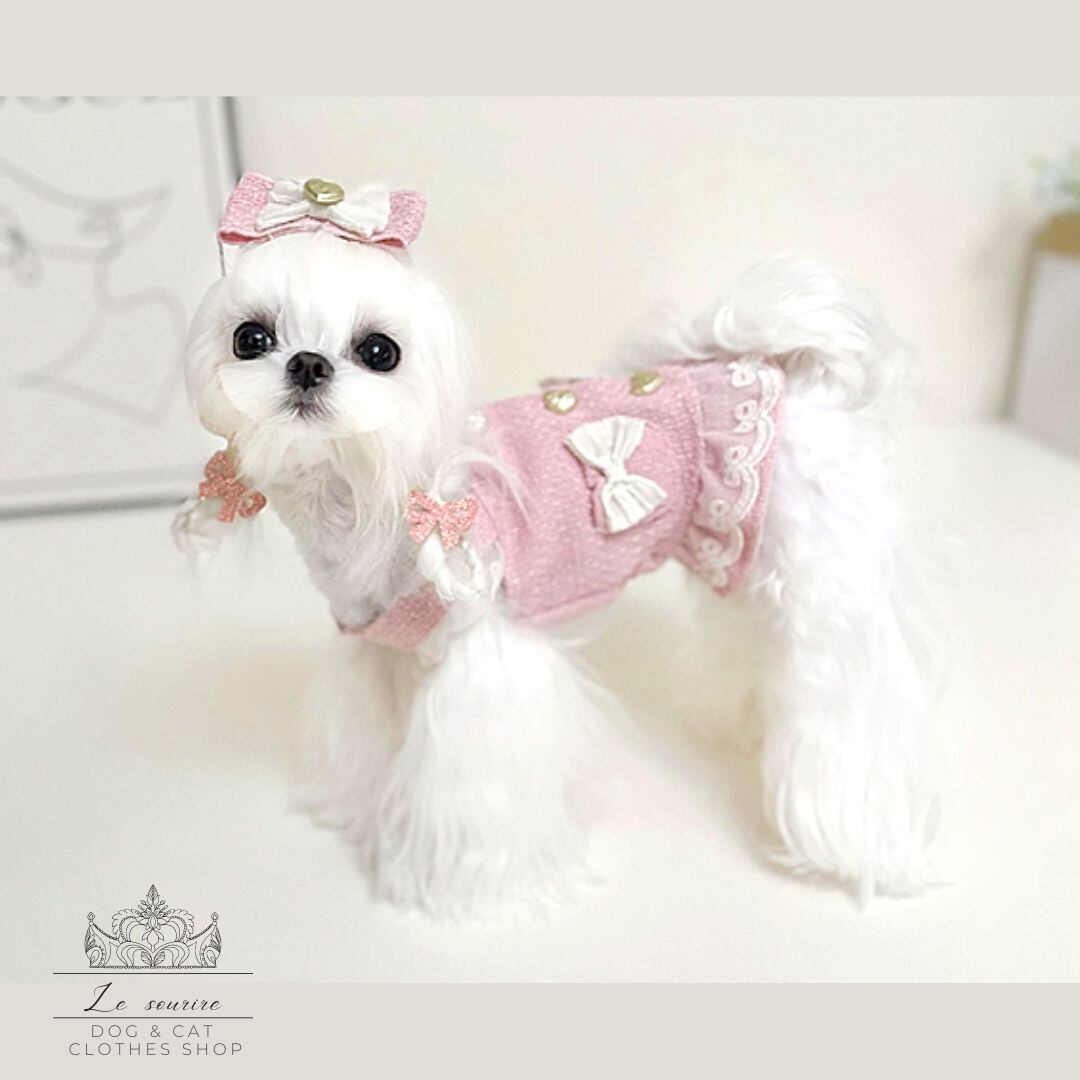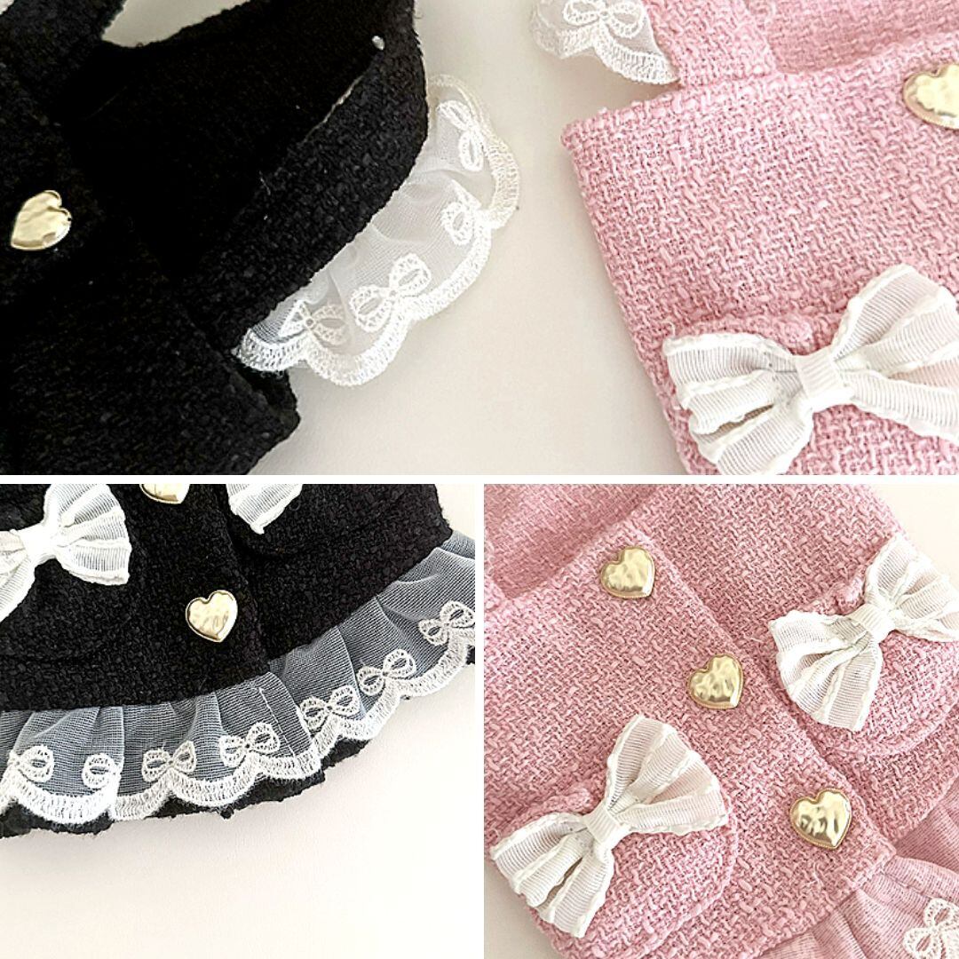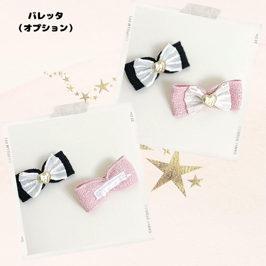 予約【№B02305】キュートリボン ハートボタン ツイードワンピ