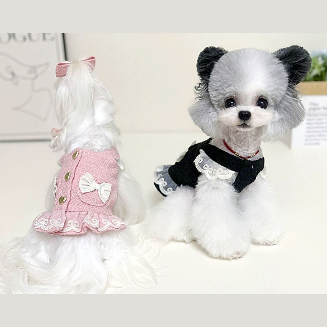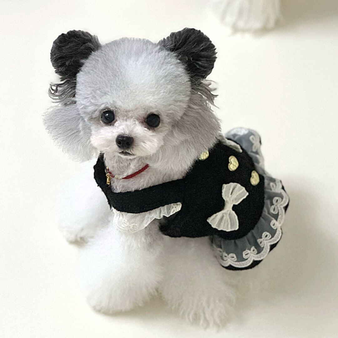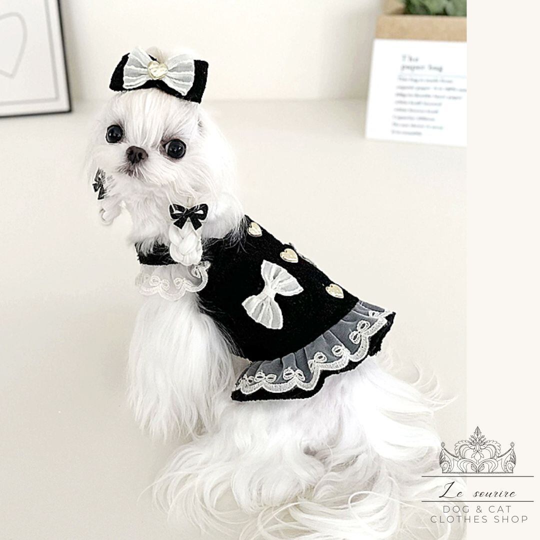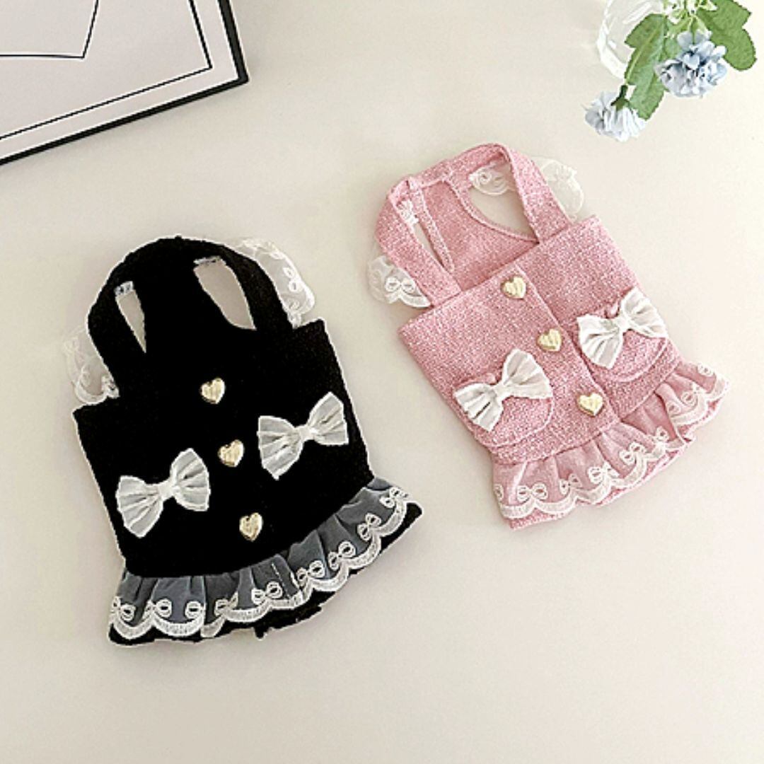 予約【№B02305】キュートリボン ハートボタン ツイードワンピ