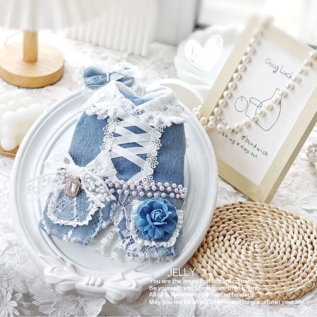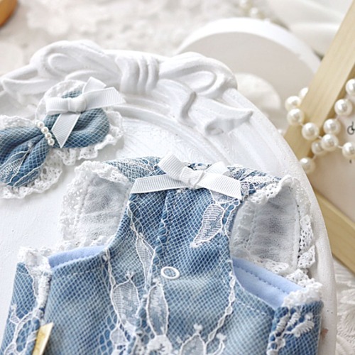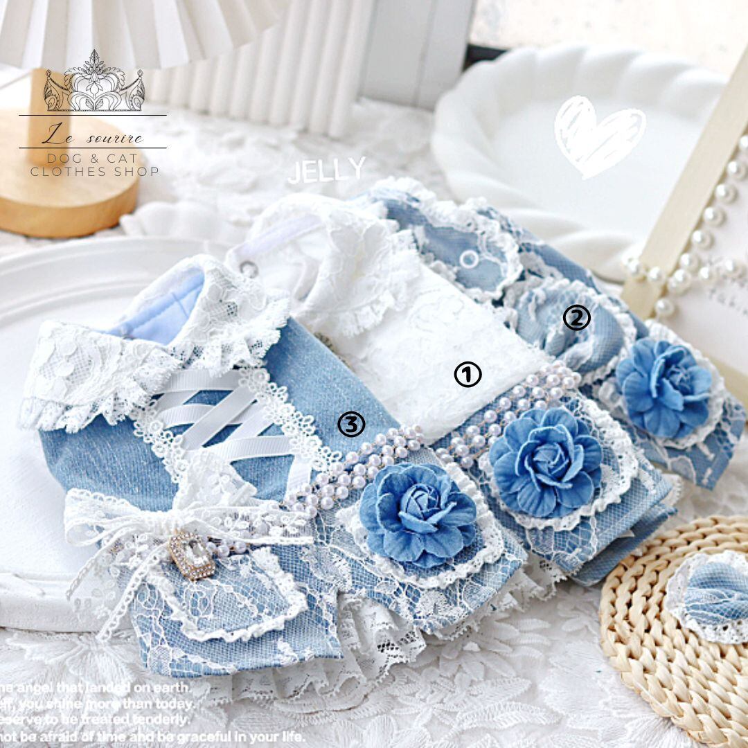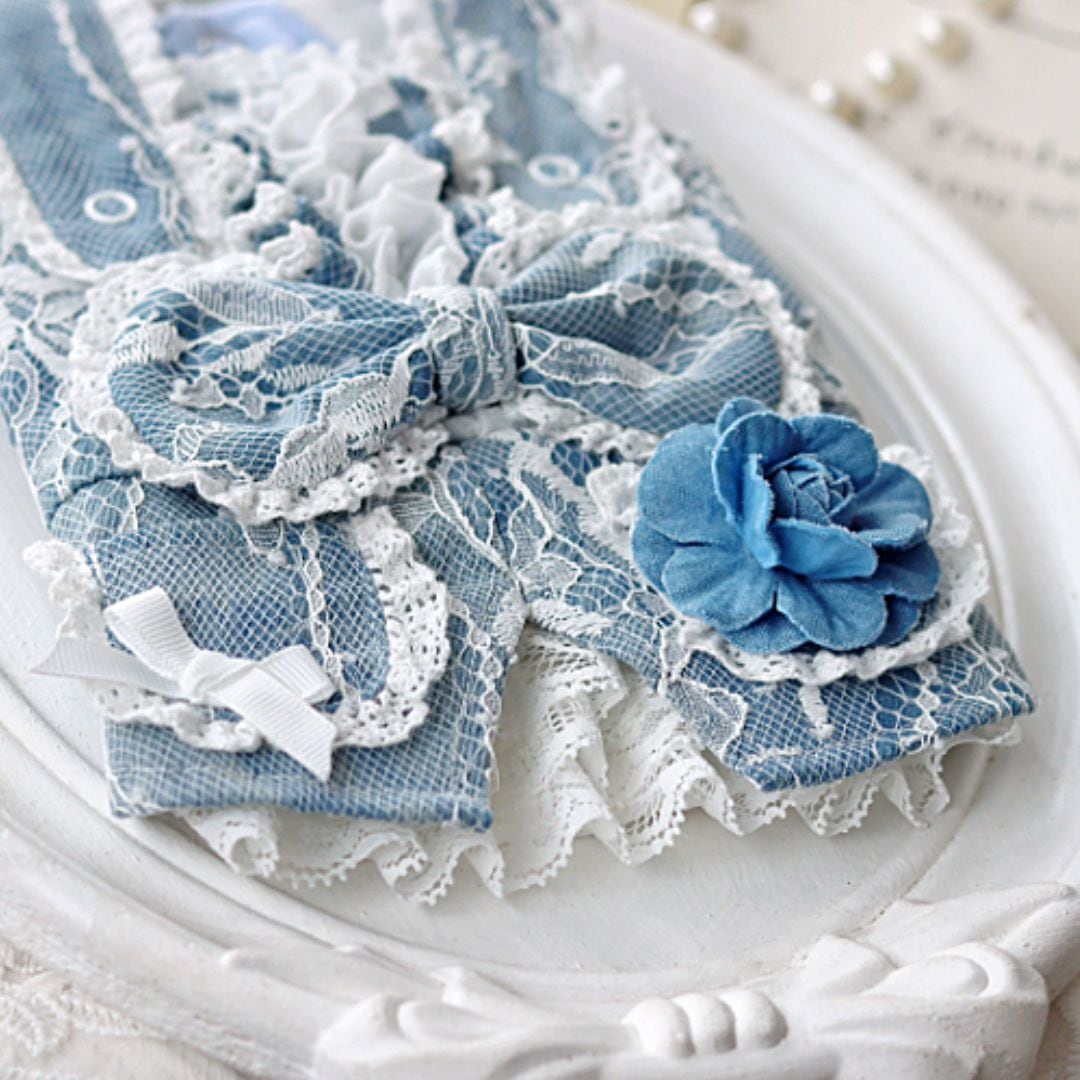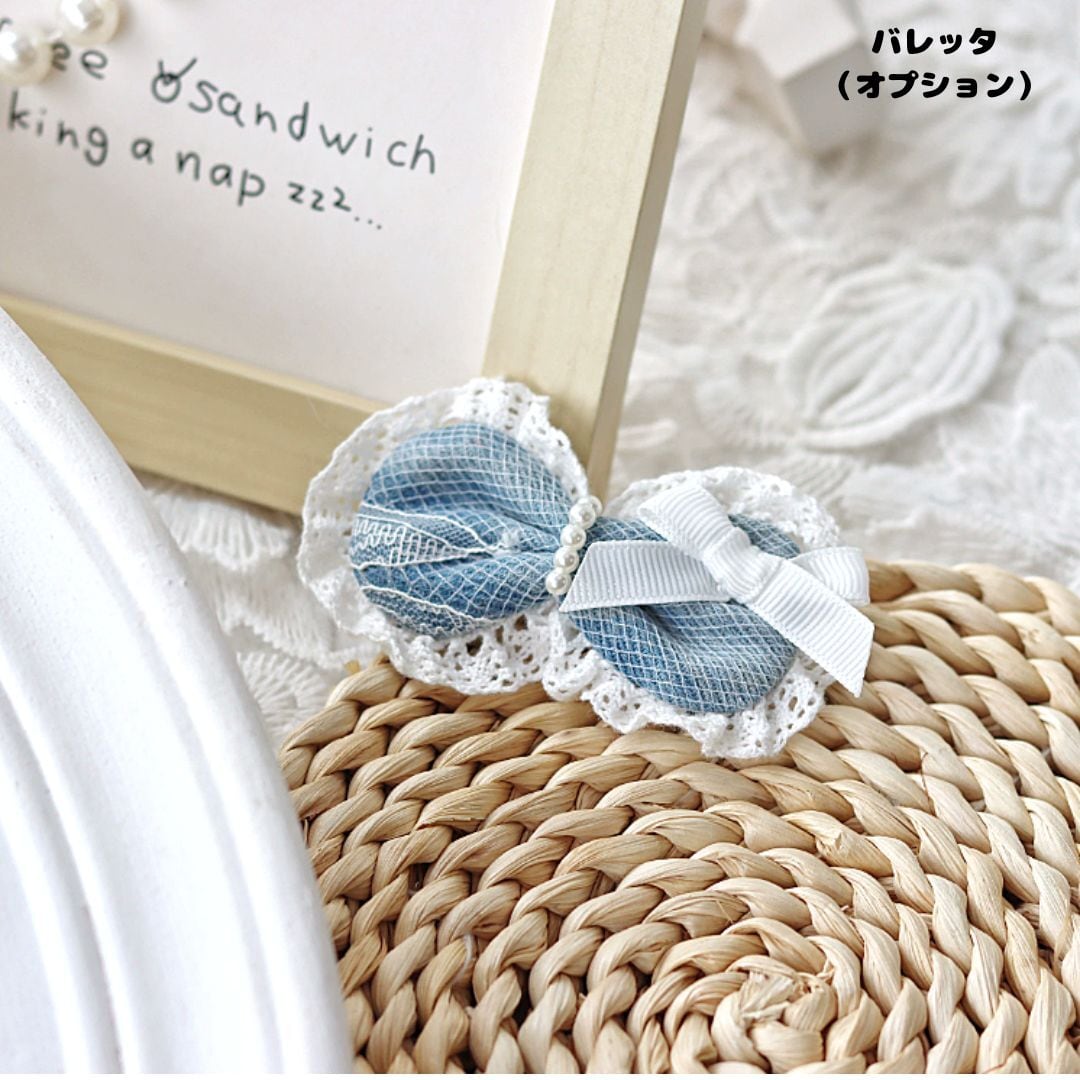 予約(海外ハンドメイド)【№B02352】JELLY デニム レース フラワー&リボンモチーフ ワンピース 3種(バレッタ:オプション)