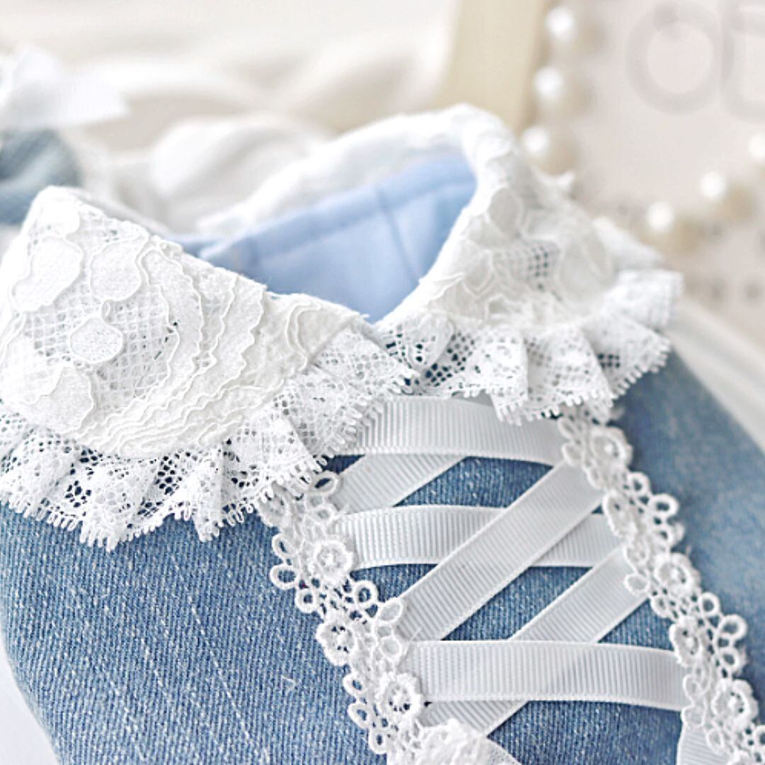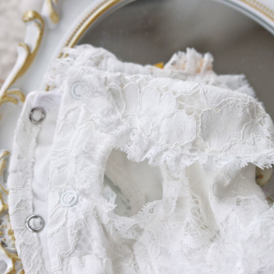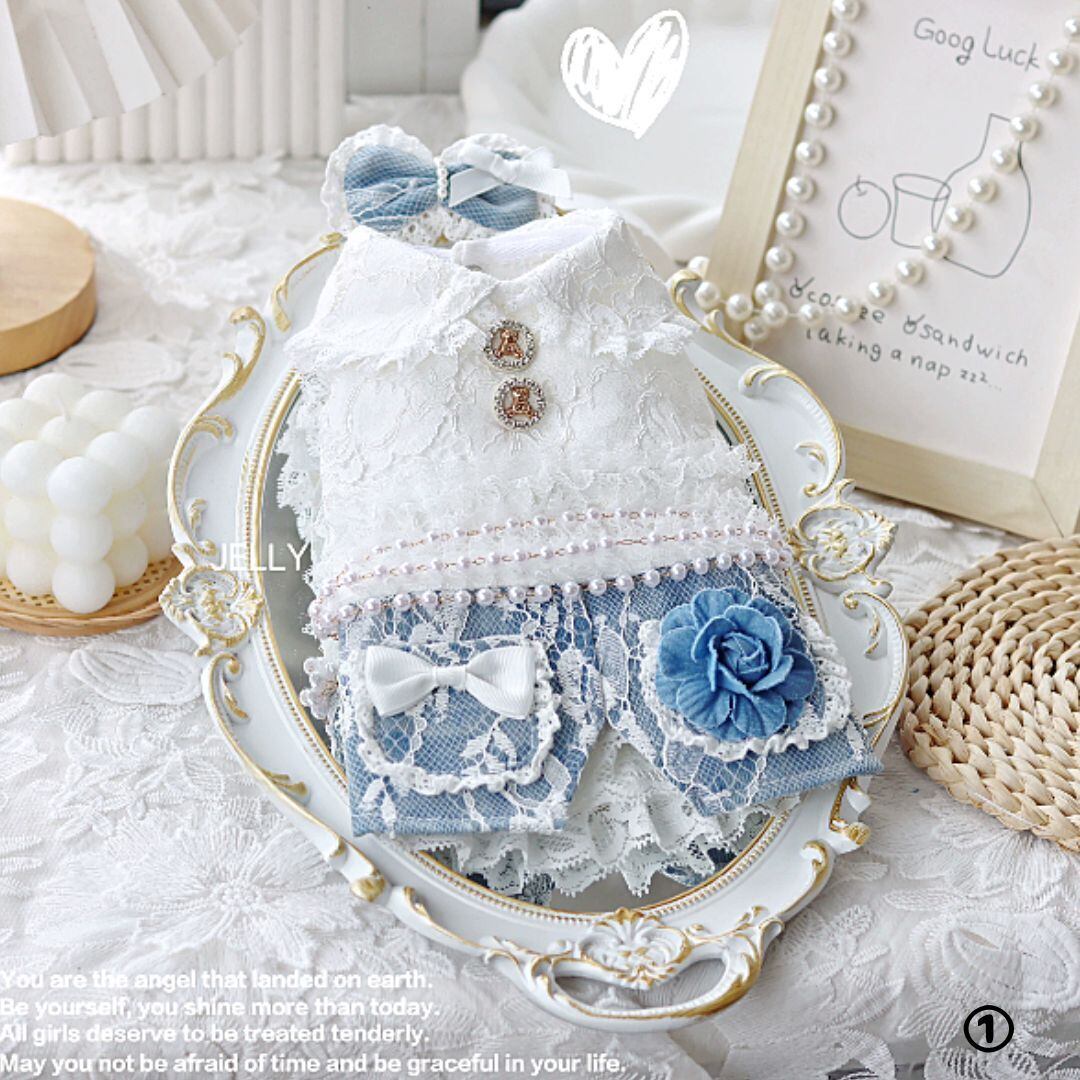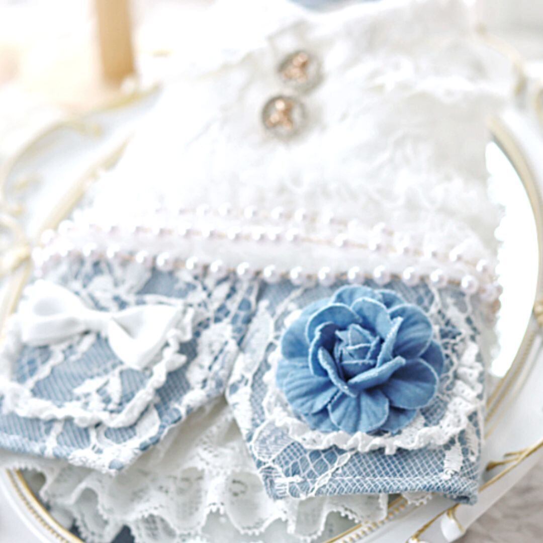 予約(海外ハンドメイド)【№B02352】JELLY デニム レース フラワー&リボンモチーフ ワンピース 3種(バレッタ:オプション)