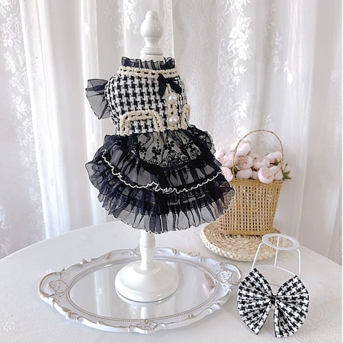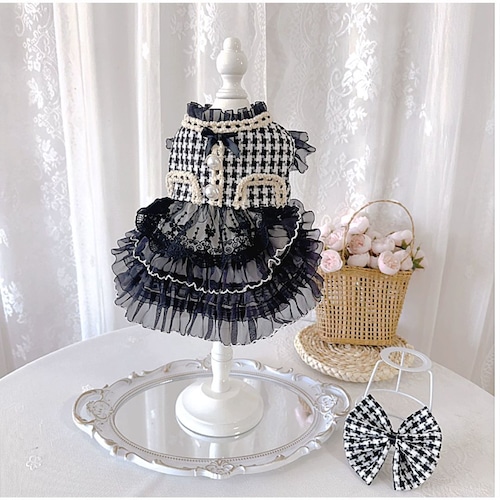 予約【№B02382】千鳥柄 ツイード チュールフリルワンピ