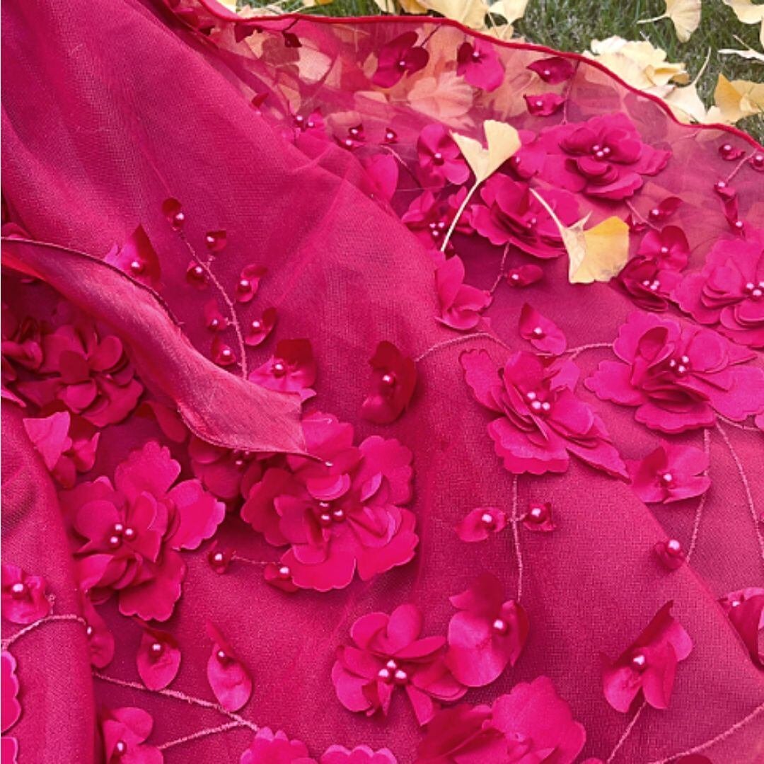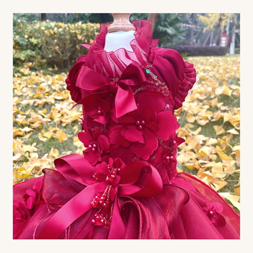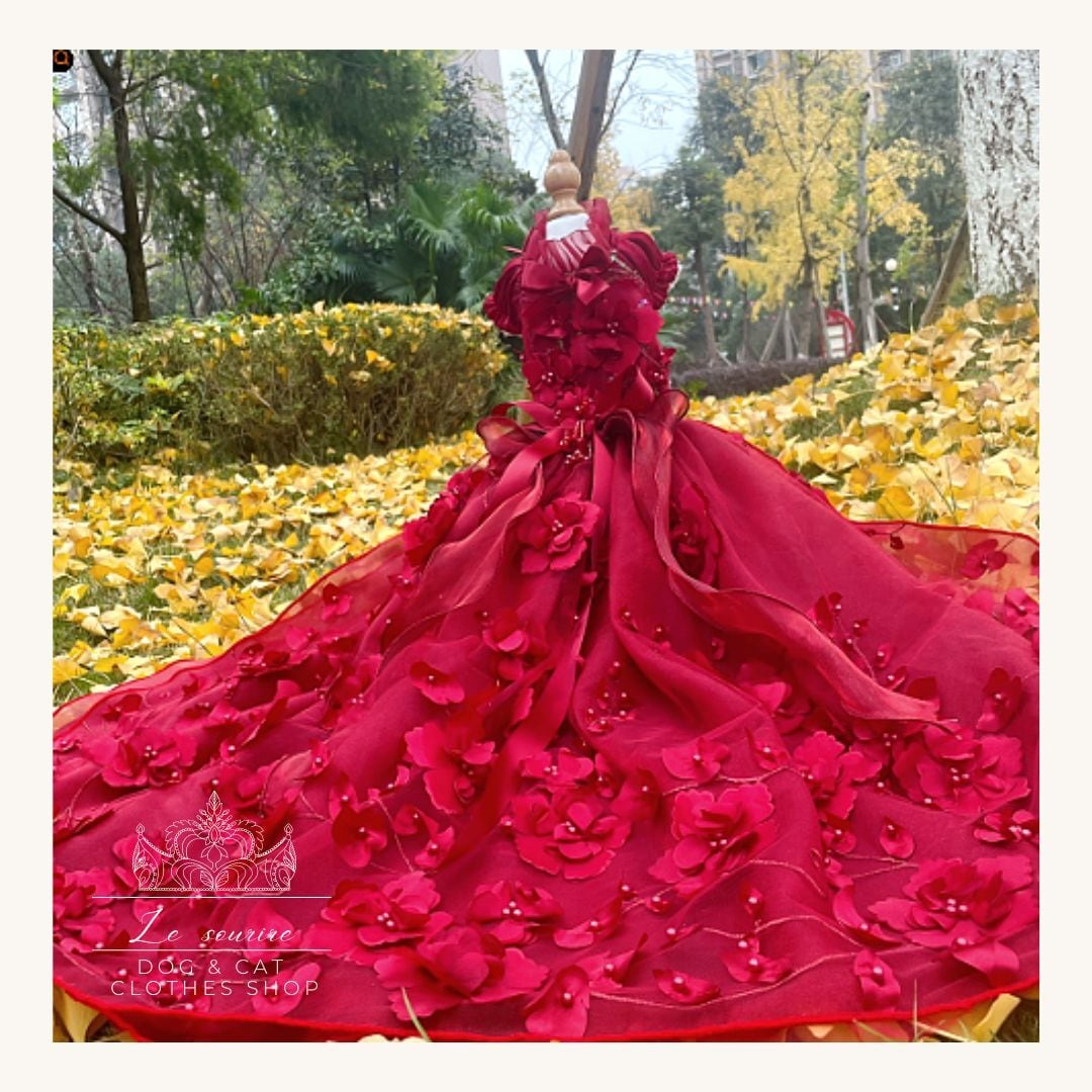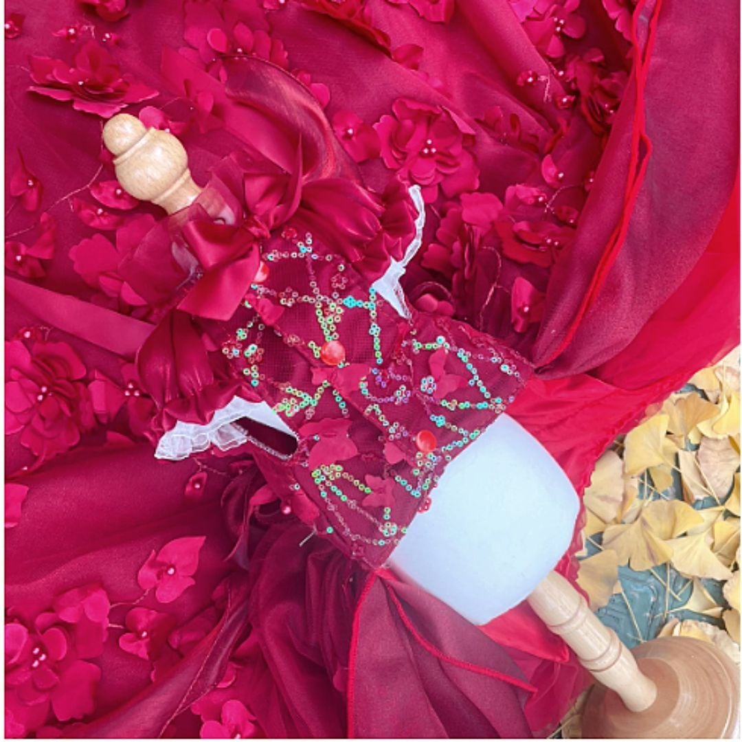 予約(海外ハンドメイド)【№B02730】フラワーモチーフ ワインレッド ロングドレス