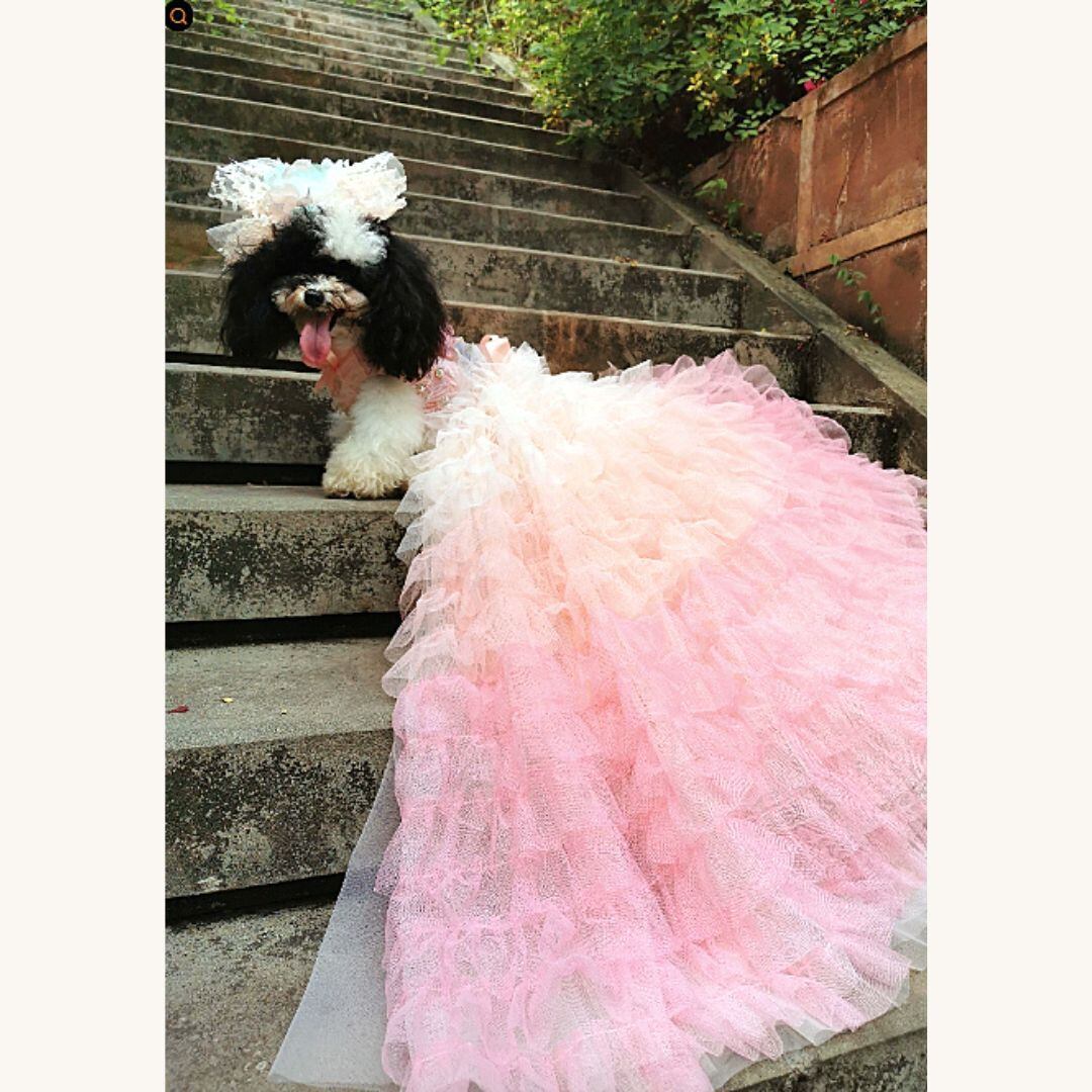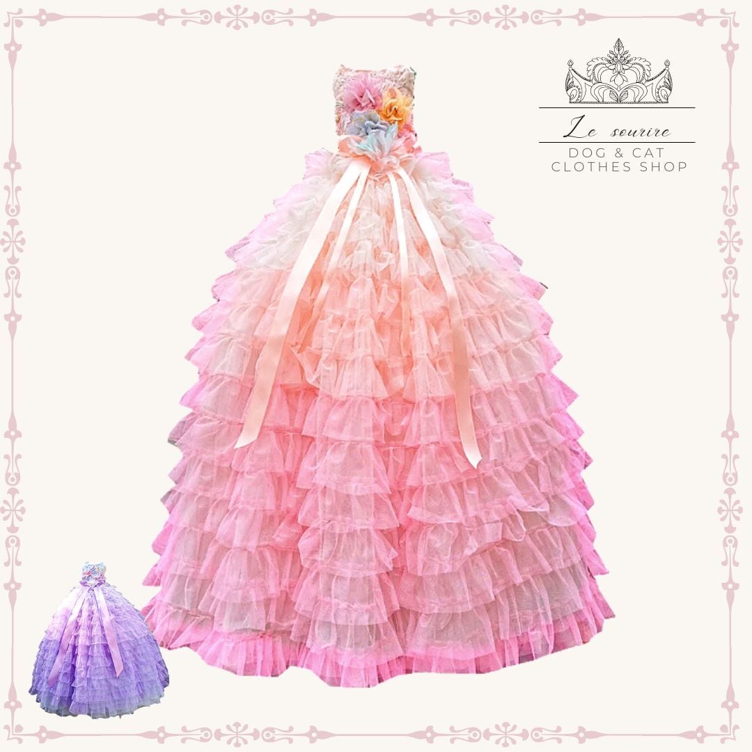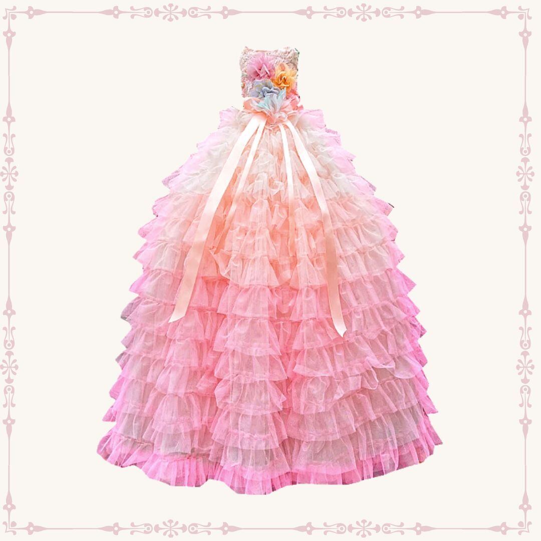 予約(海外ハンドメイド)【№B02782】グラデーションケーキ ロングチュチュ ウエディングドレス