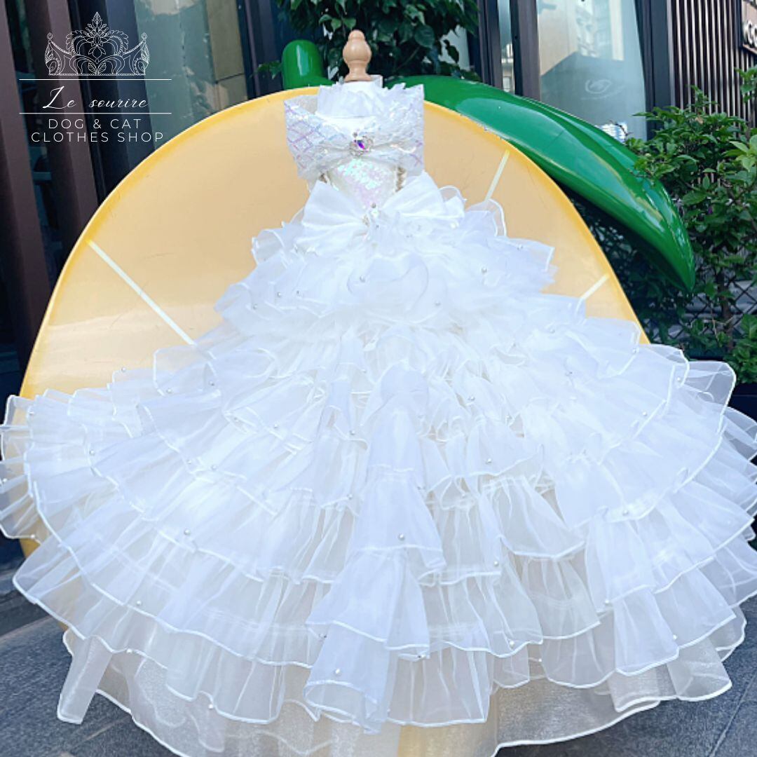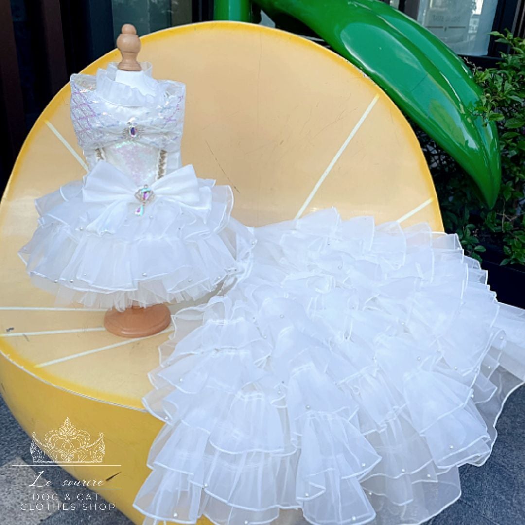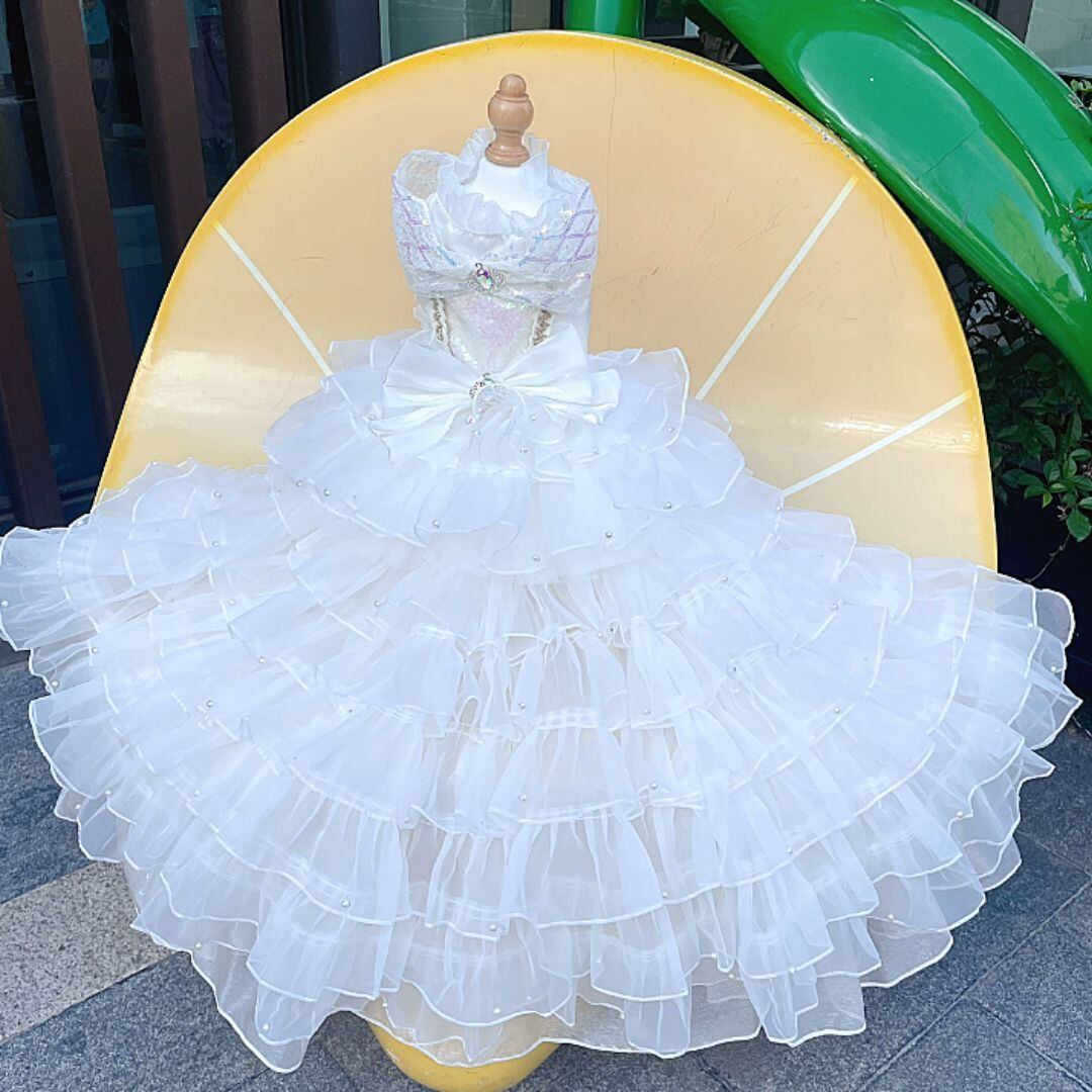 予約(海外ハンドメイド)【№B02784】パールモチーフ ティアード キラキラプリンセスドレス(2way)