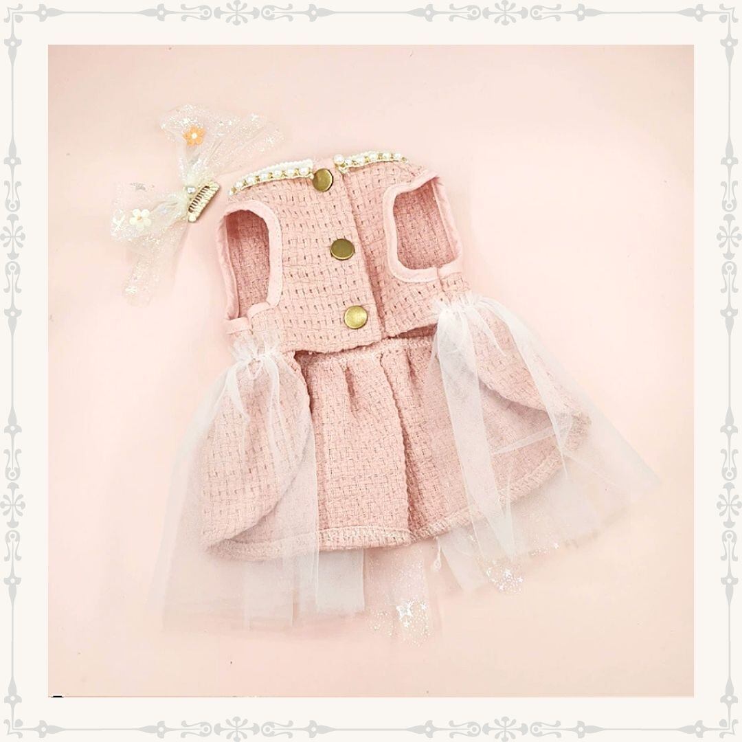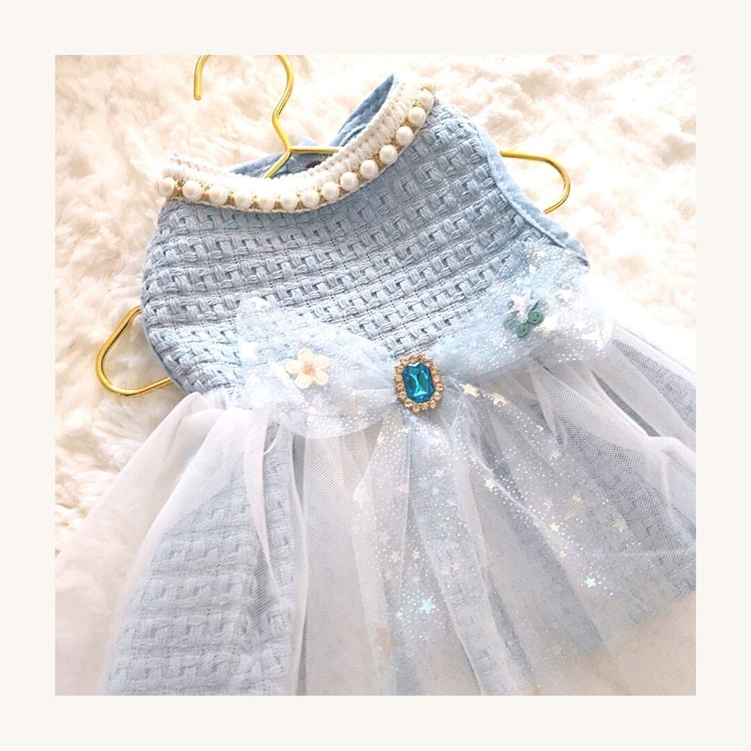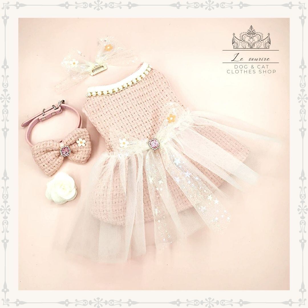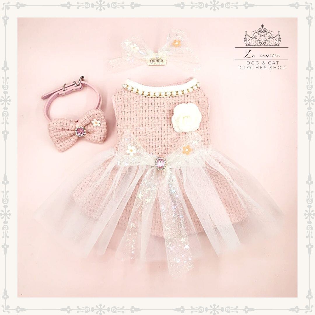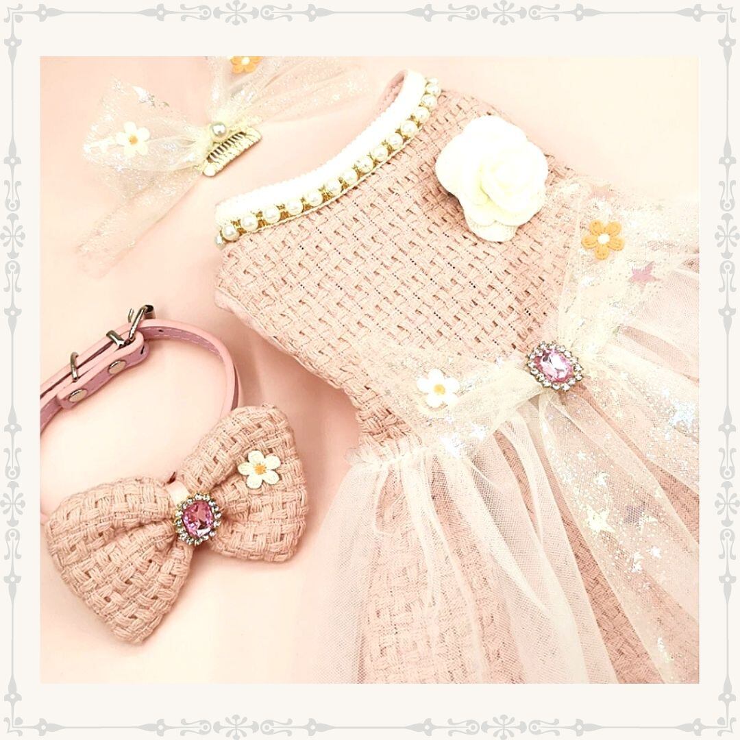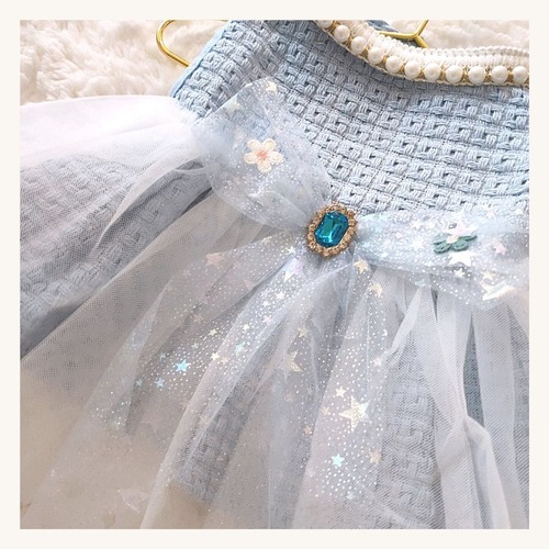 予約【№B02854】Aライン キラキラ プリンセスワンピ(首輪・バレッタ・フラワーモチーフ)