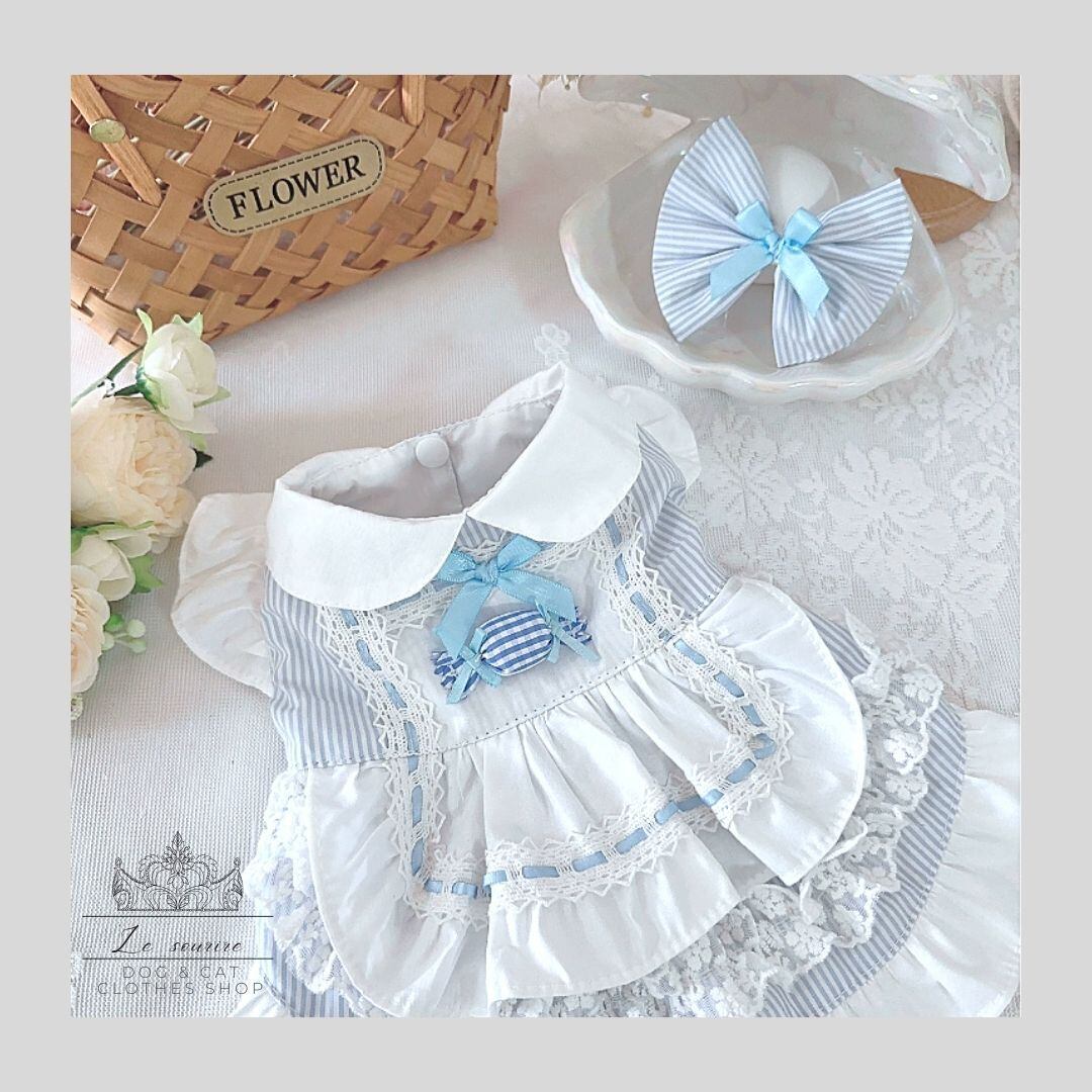 予約【№B02932】ストライプ柄 キャンディー エプロンワンピ(バレッタ:オプション)