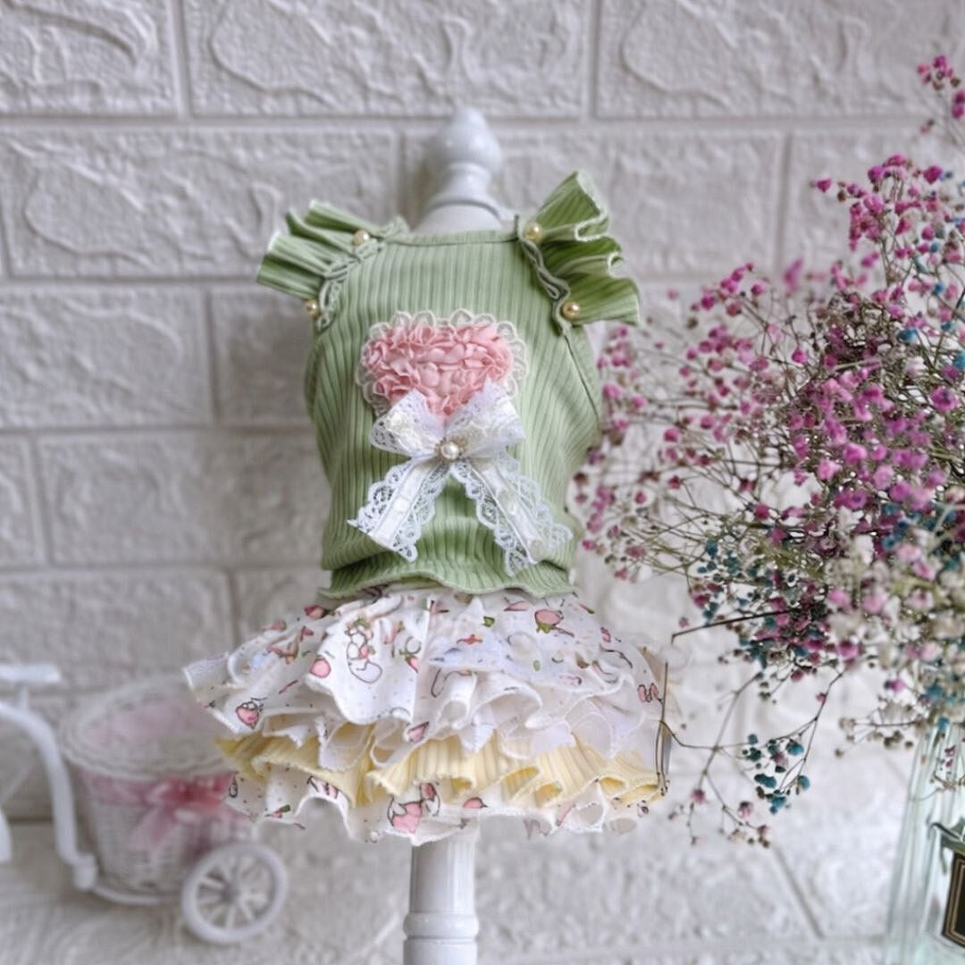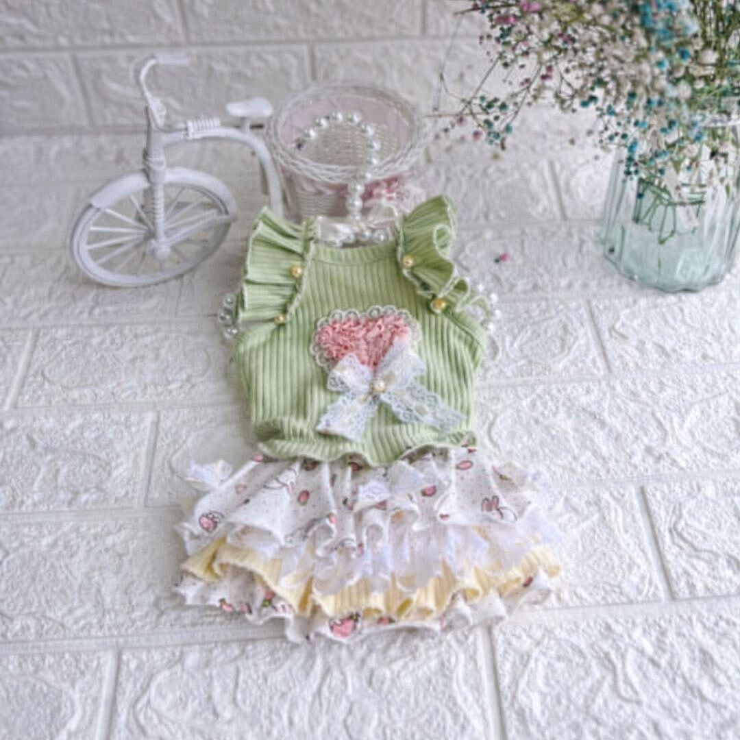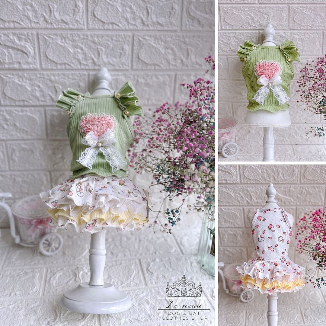 予約 海外ハンドメイド【№B03004】春夏 ツーピース コットンストレッチ ハートモチーフ ティアードワンピ