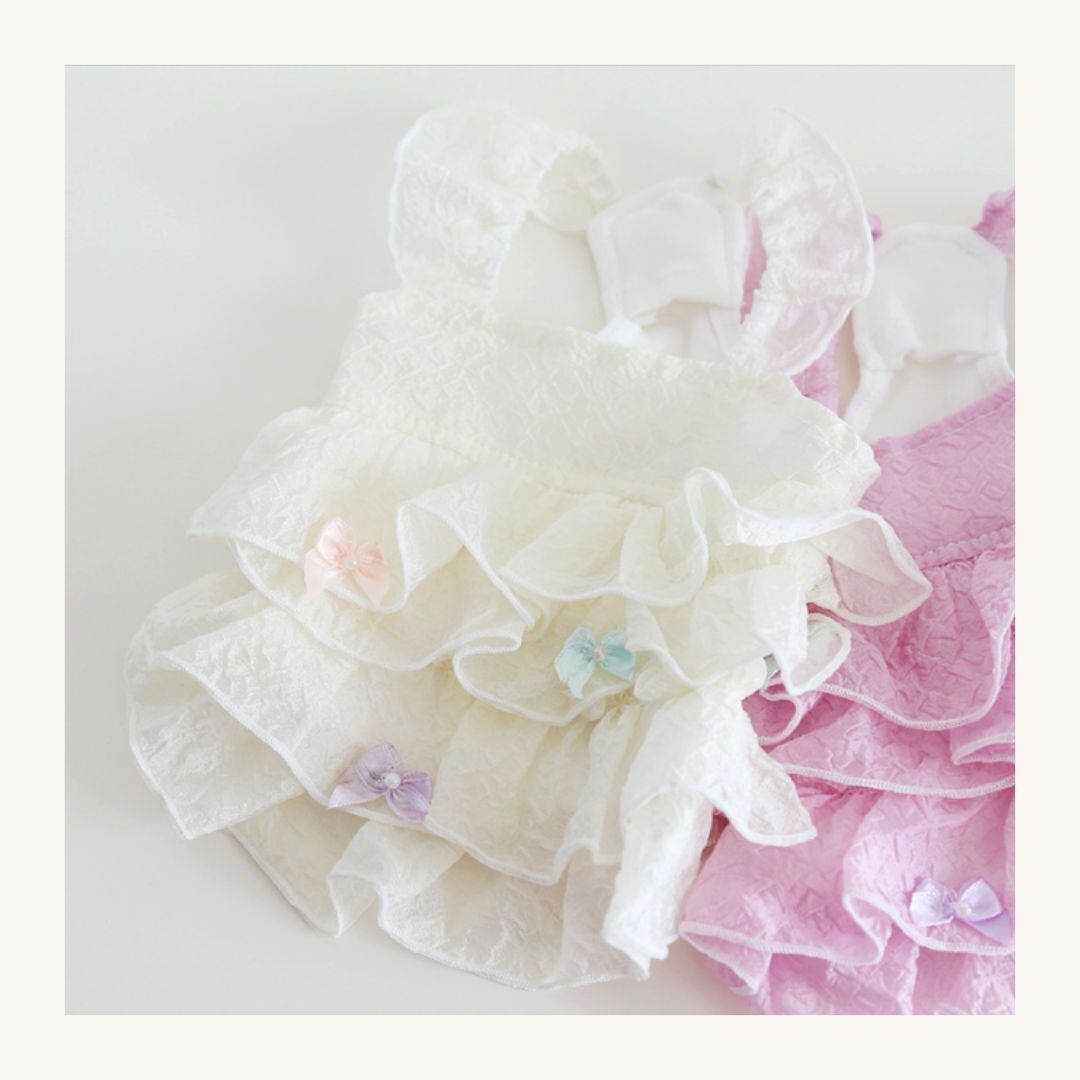 予約【№B03042】バタフライスリーブ リップル チュチュワンピ