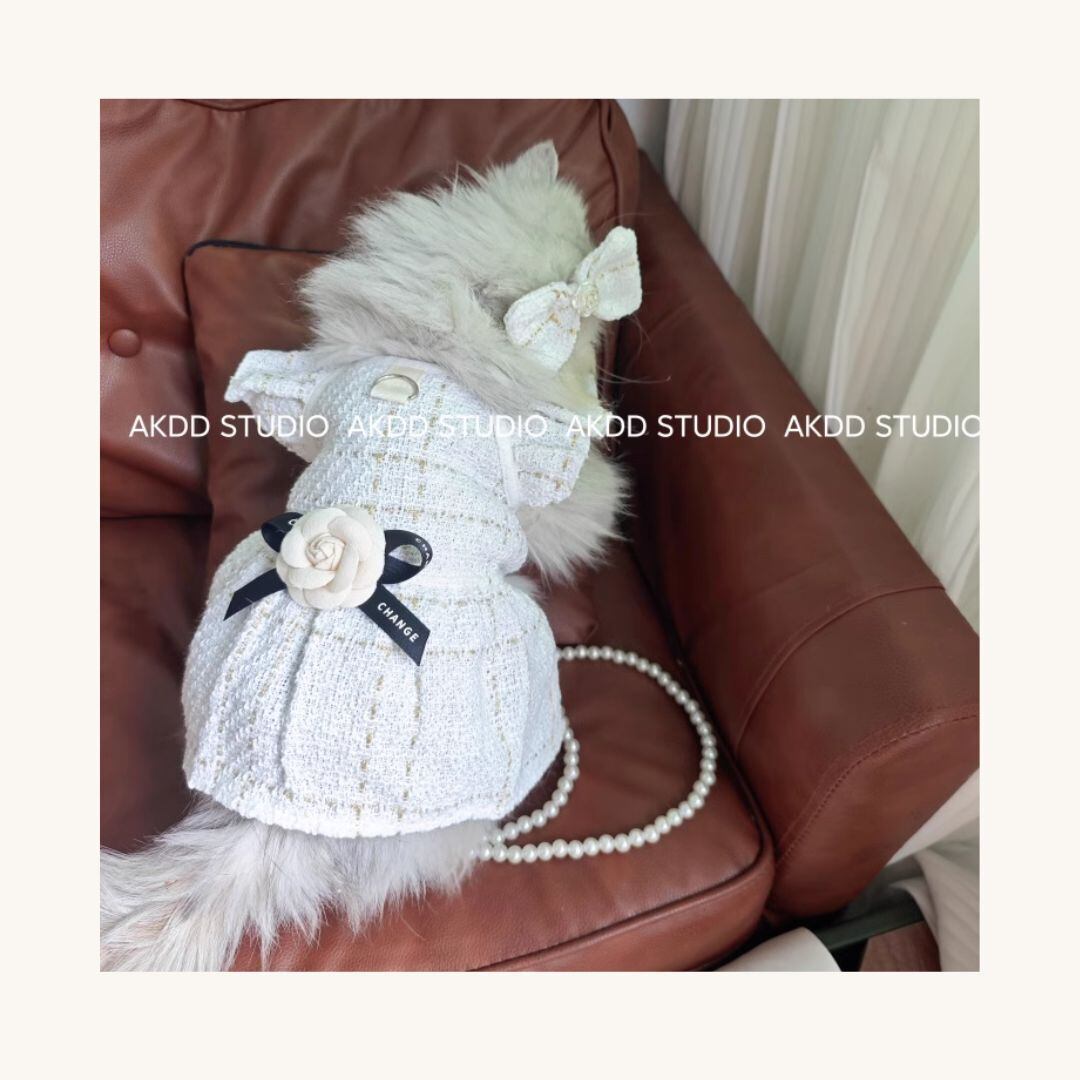 予約【№B03062】春夏 ツイード フライングスリーブ フレアワンピ(バレッタ付き)