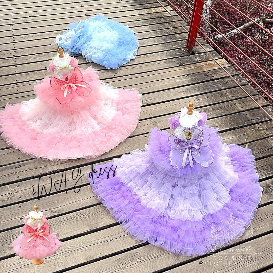 予約(海外ハンドメイド)【№B03121-L】バタフライ チュール ロング&ショートドレス(3カラー)