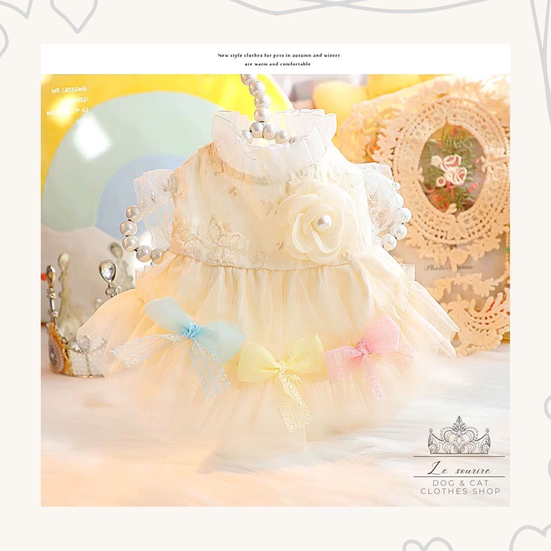 予約【№B03129】カメリア&おリボン アプリコットカラー ワンピ