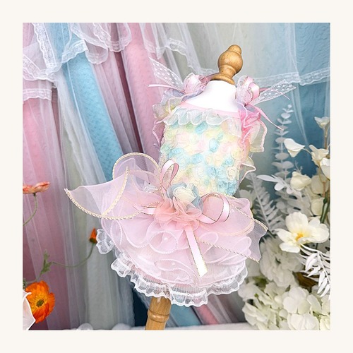 予約(海外ハンドメイド)【№B03142】 ローズディテール シフォンフレア サンドレス