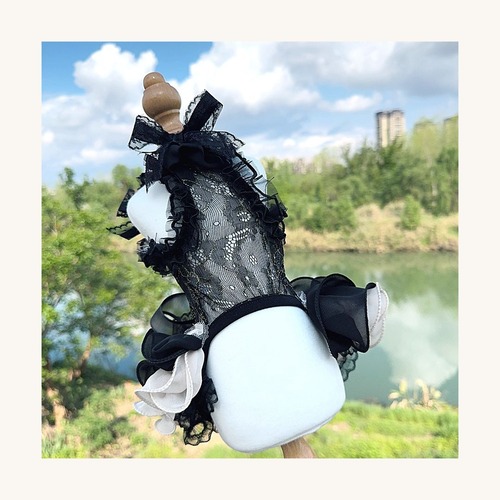 予約(海外ハンドメイド)【№B03168】フラワーレース フレア モノトーン サンドレス