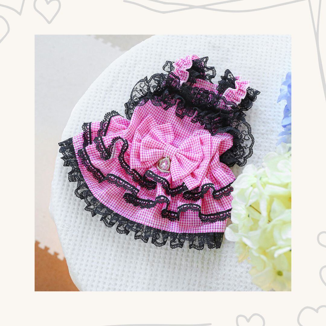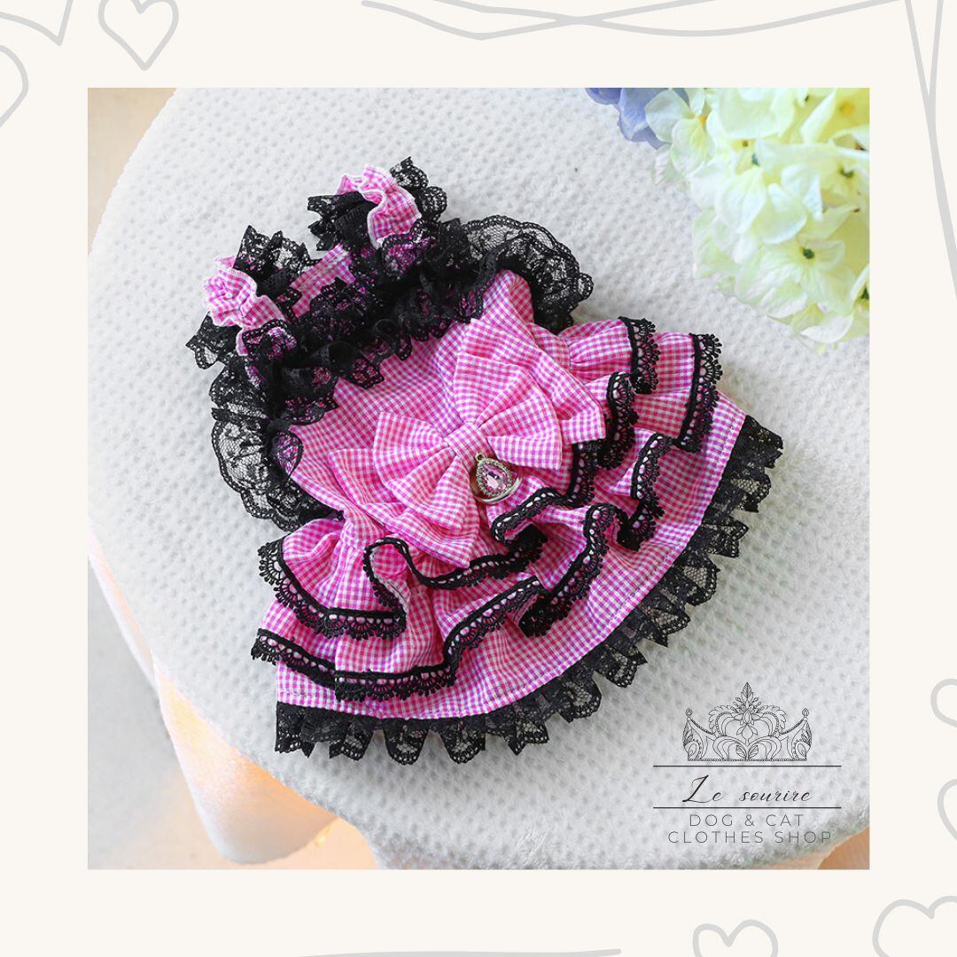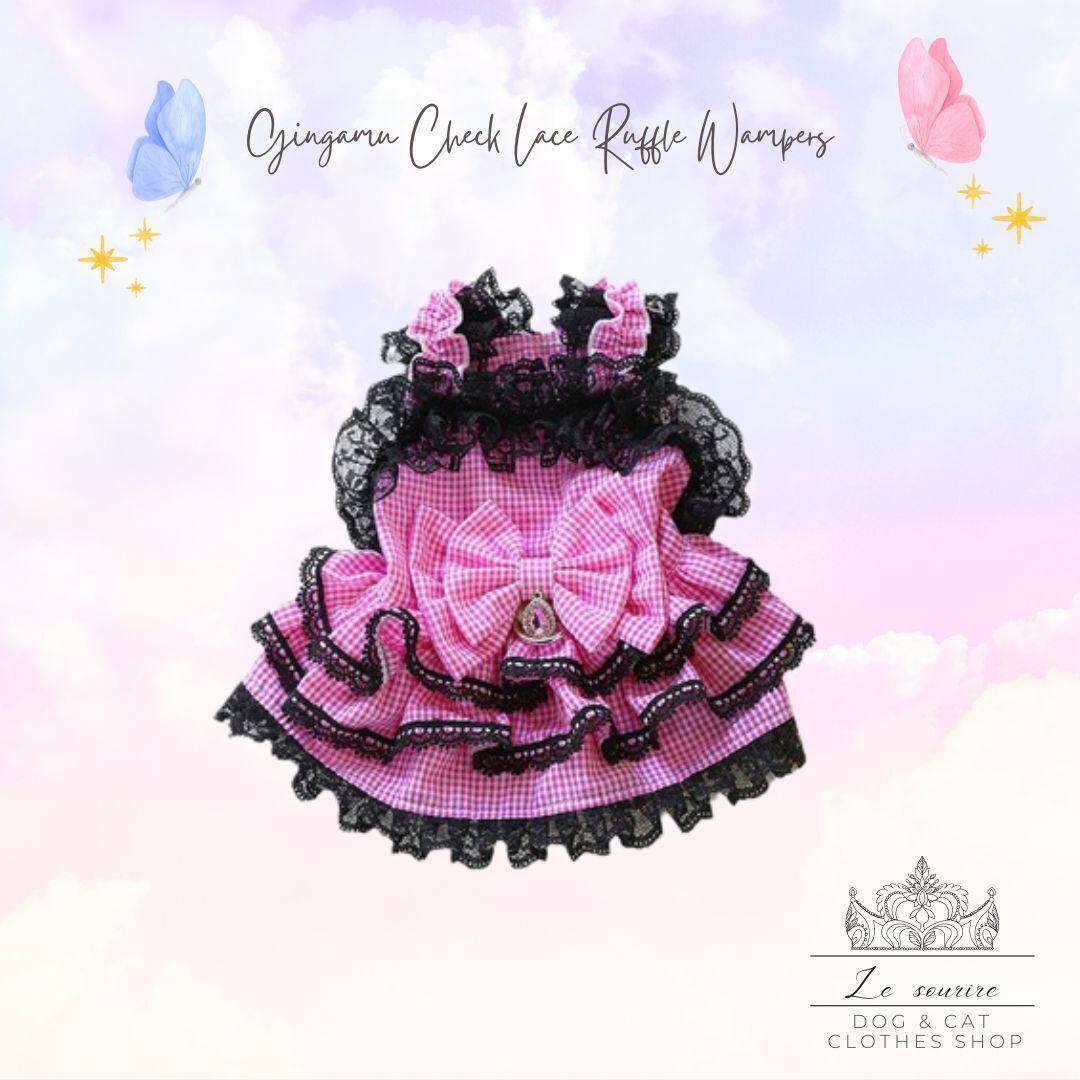 予約【№B03405】ギンガムチェック レースフリルワンピ