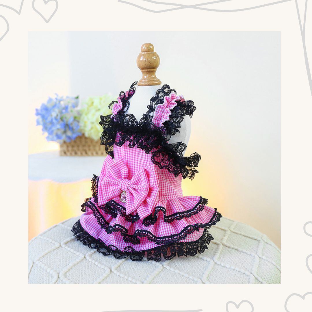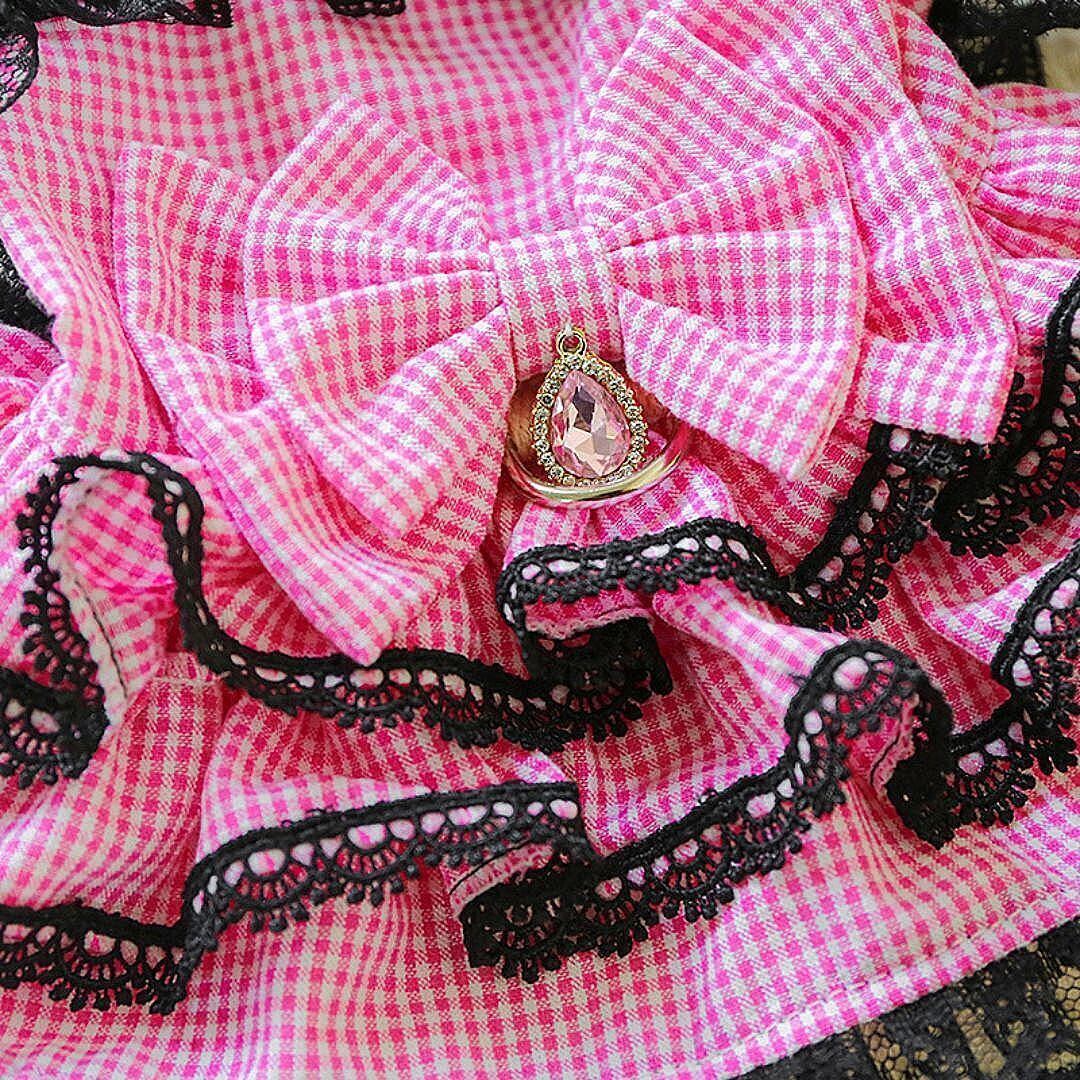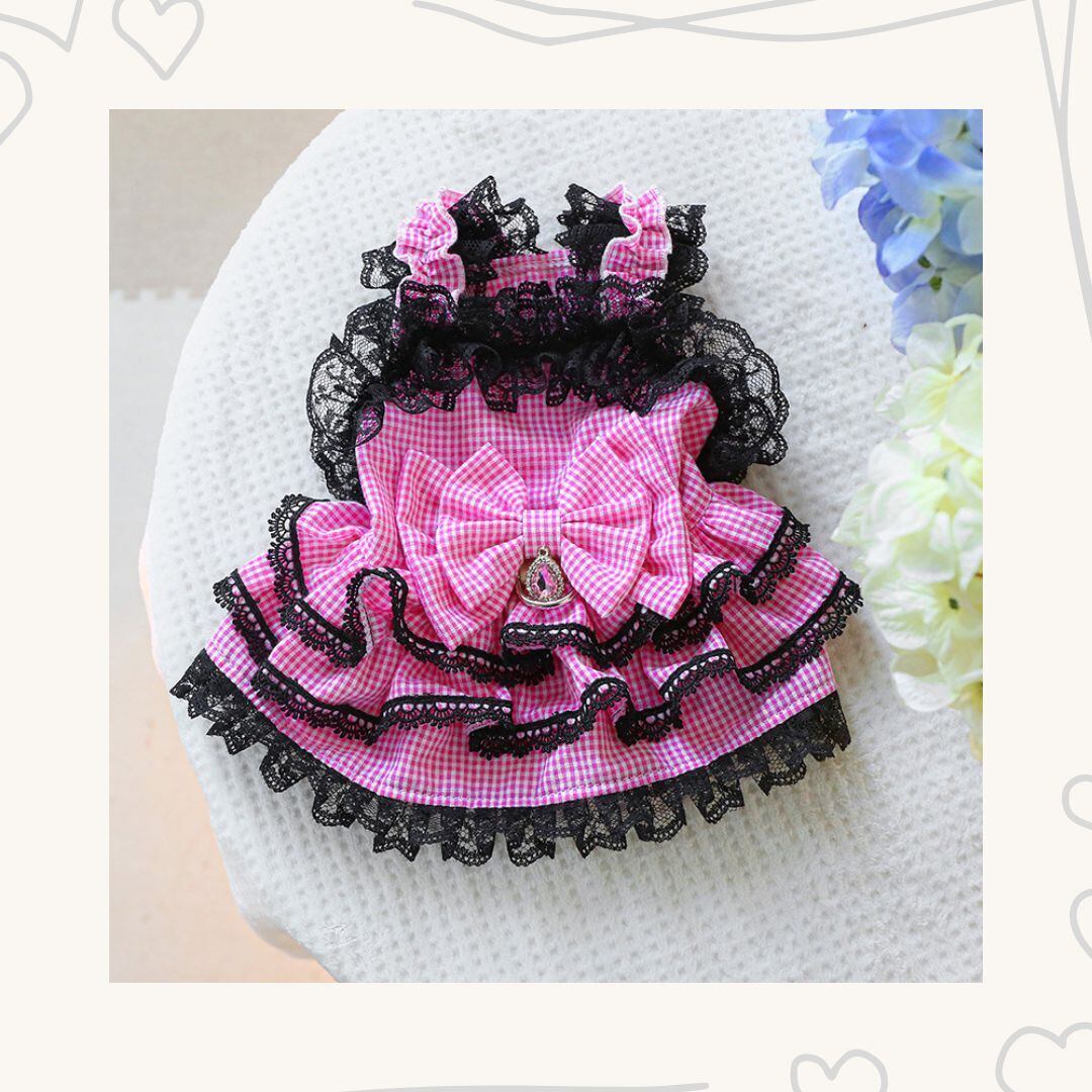 予約【№B03405】ギンガムチェック レースフリルワンピ