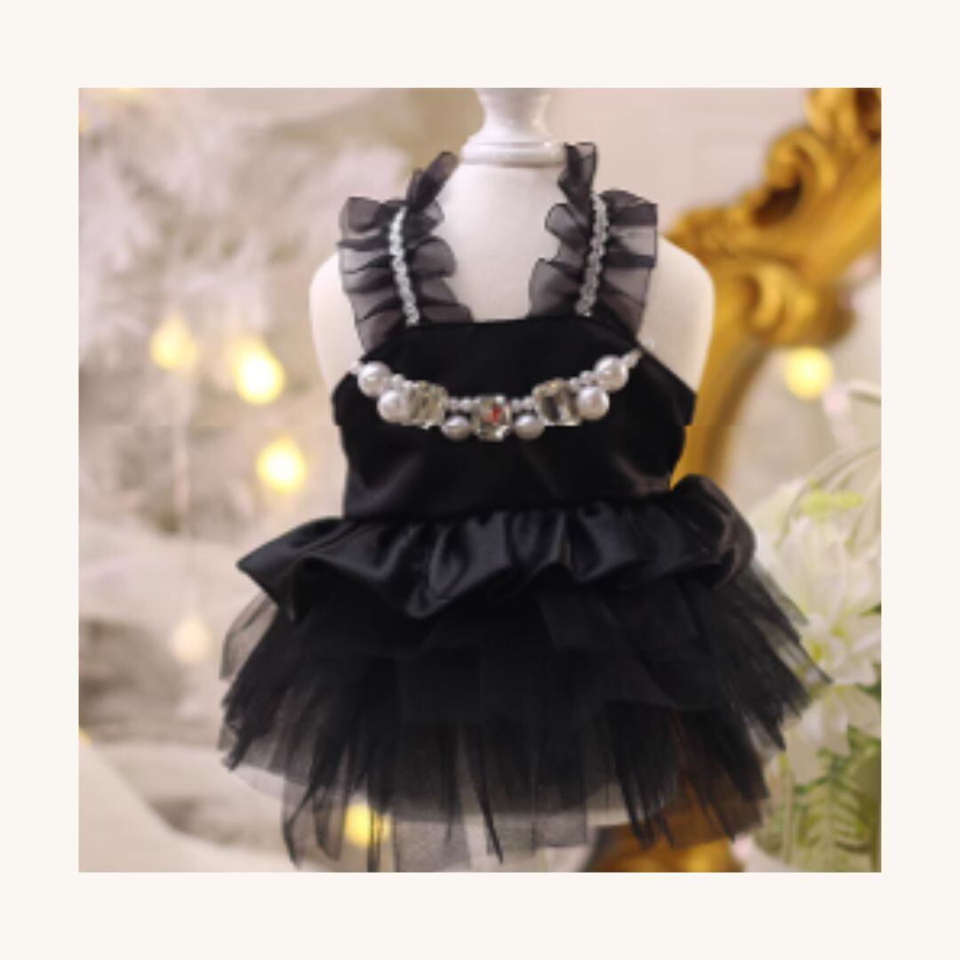 予約【№B03602】キラキラビジュー&パール チュールフリル プリンセスドレス