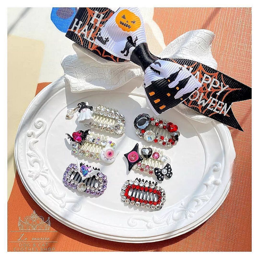予約【№B03785-1】犬猫 ハロウィン バレッタ ビジュー 4個セット(コームクリップ)