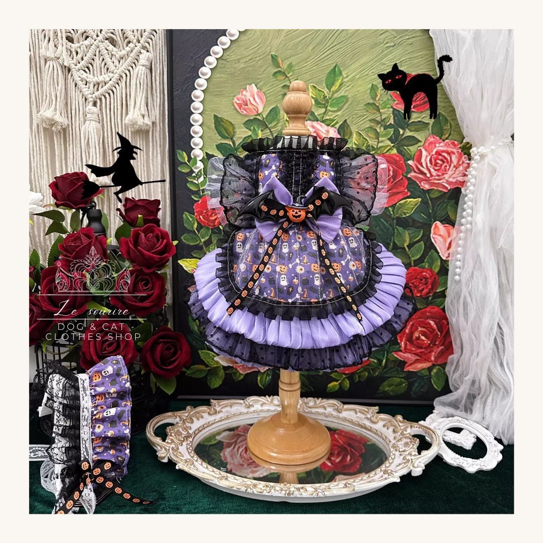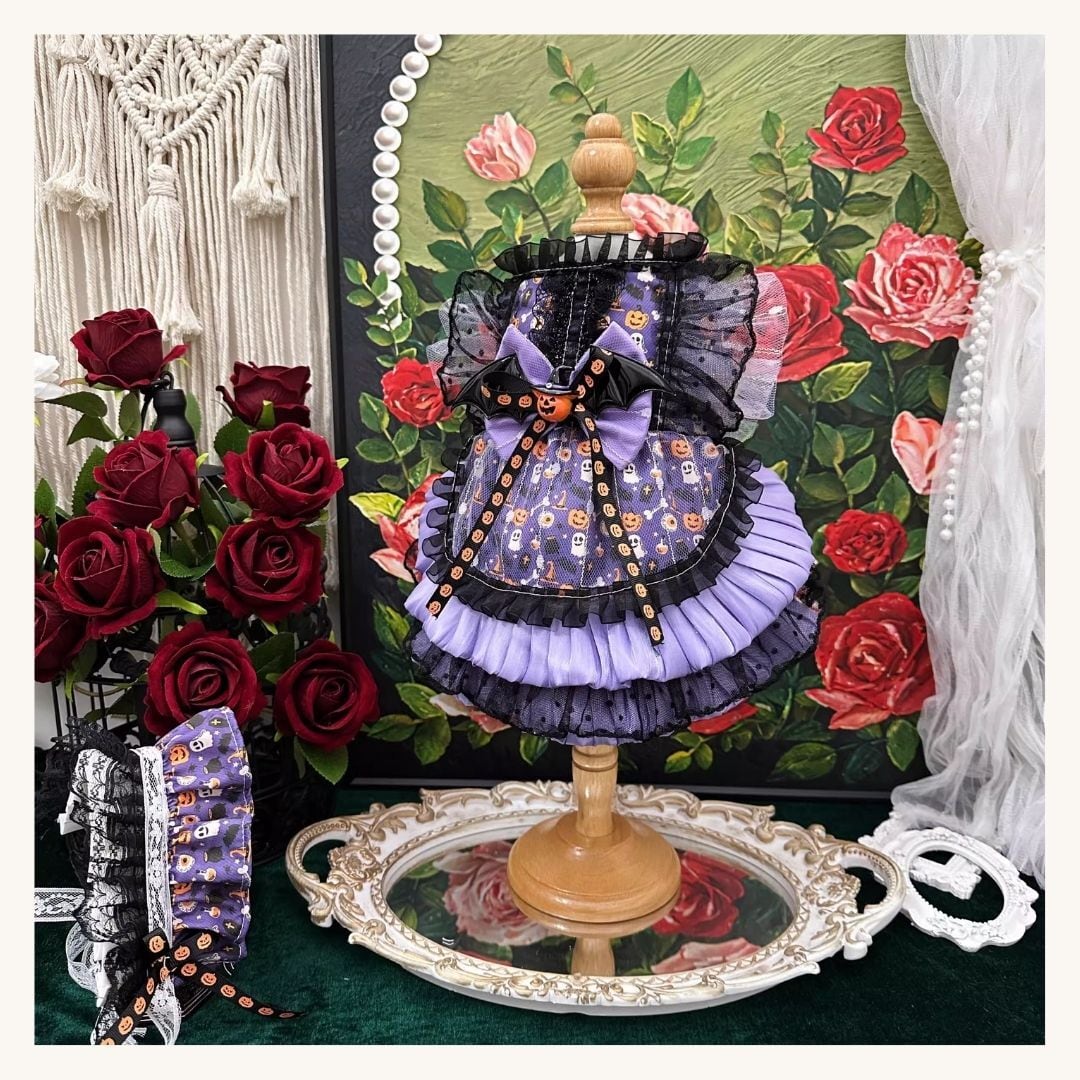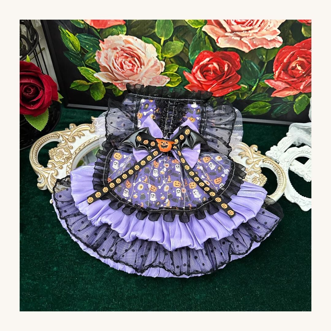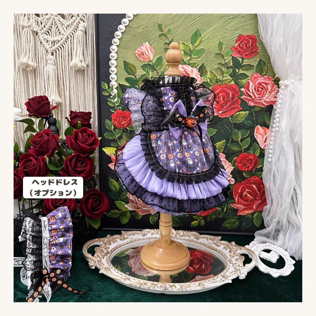 予約【№B03885】パープルカラー ハロウィンワンピ(ヘッドドレス:オプション)