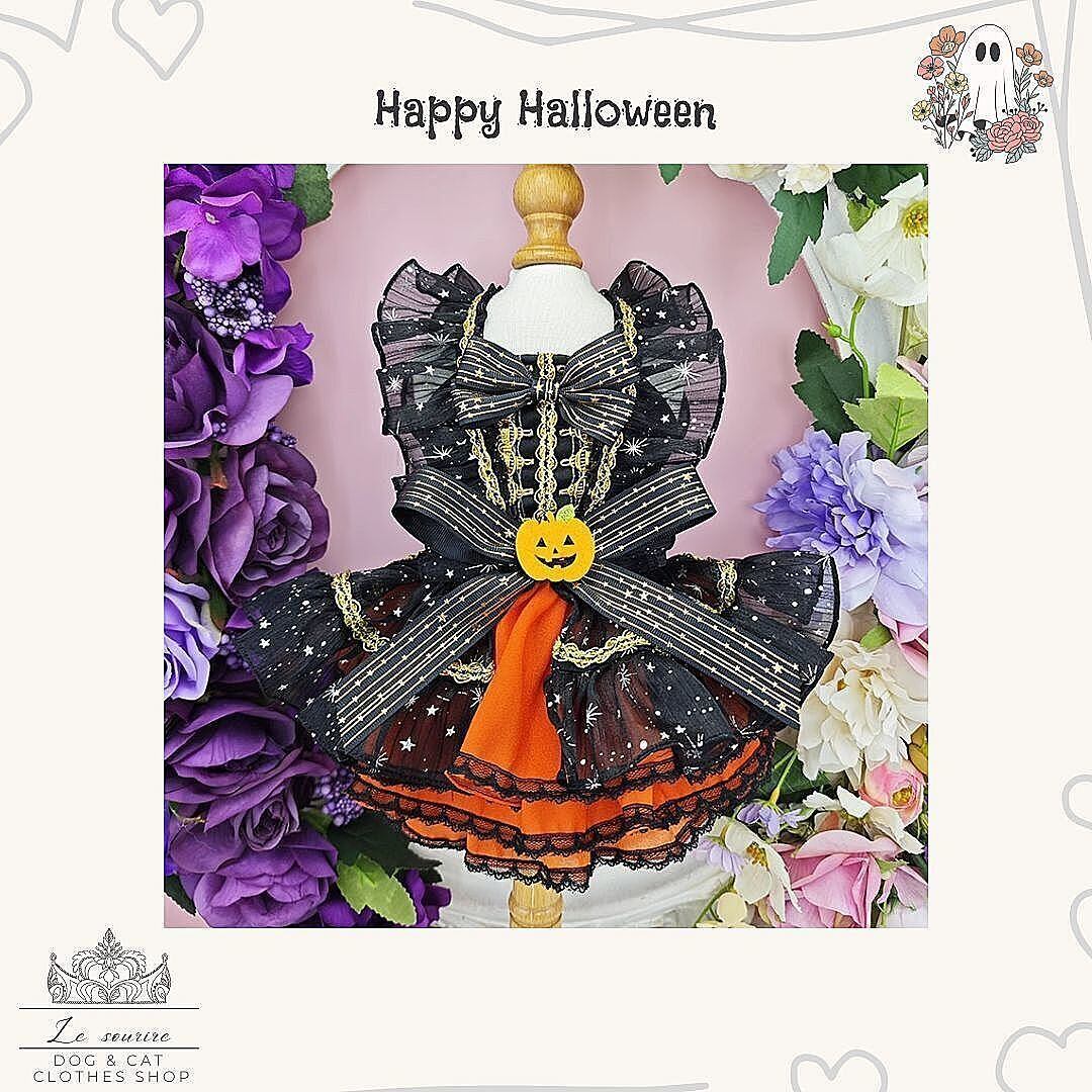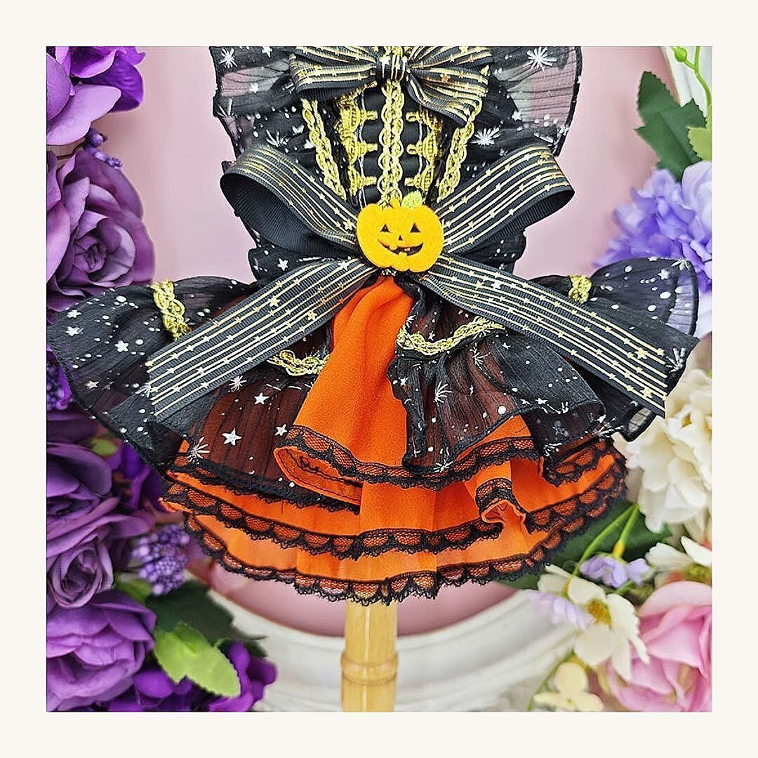 予約 海外ハンドメイド【№B03910】星柄 ハロウィン フリルワンピ