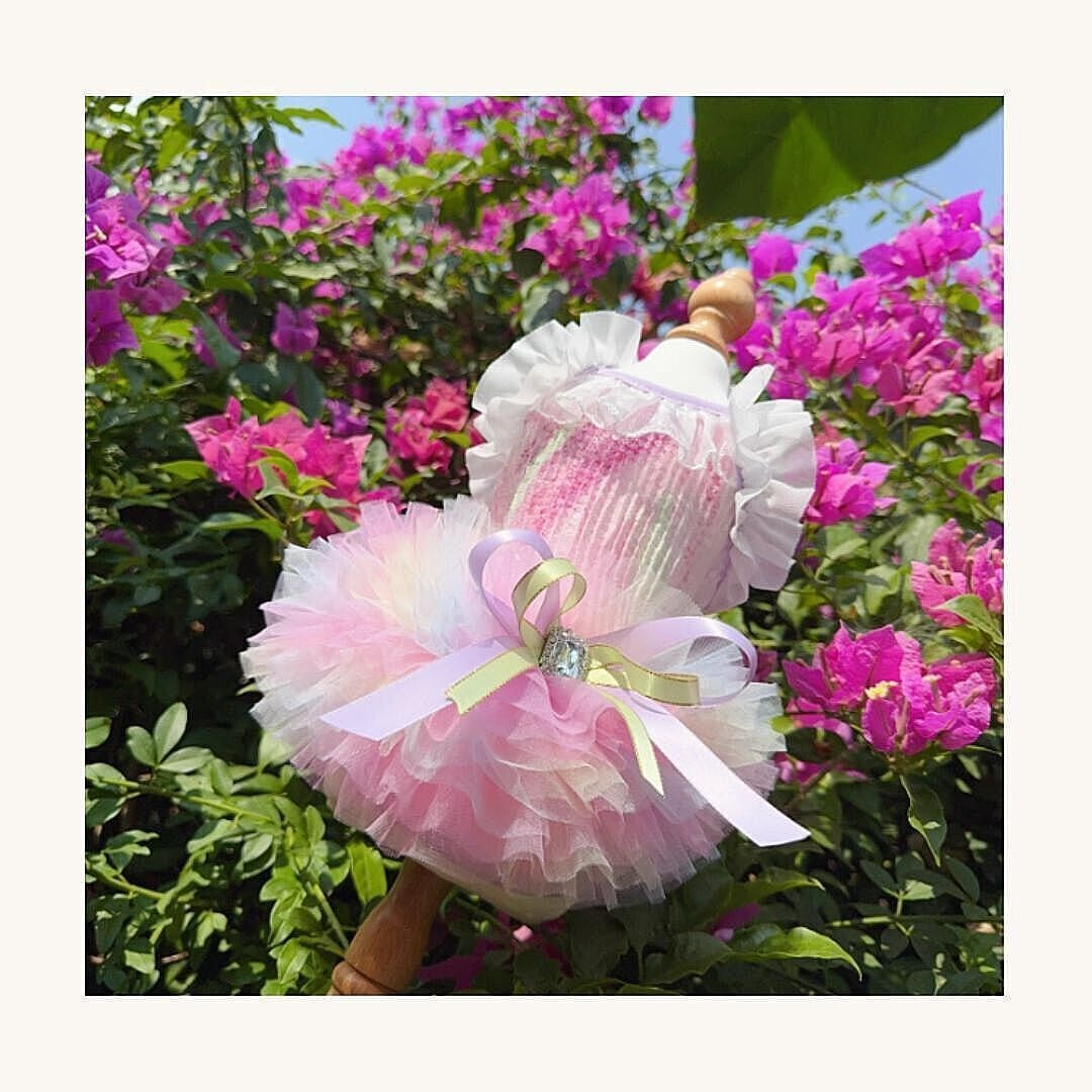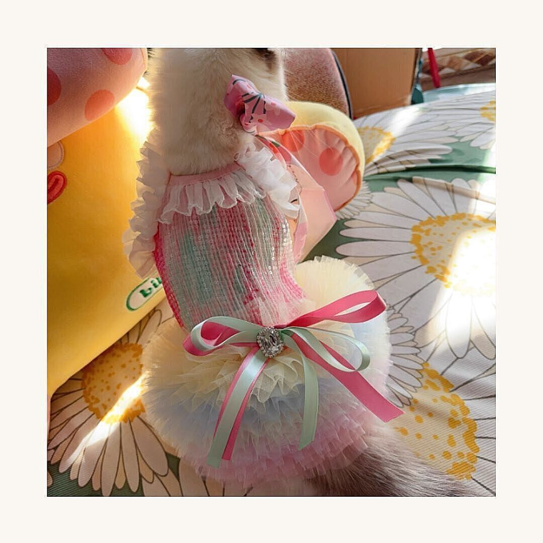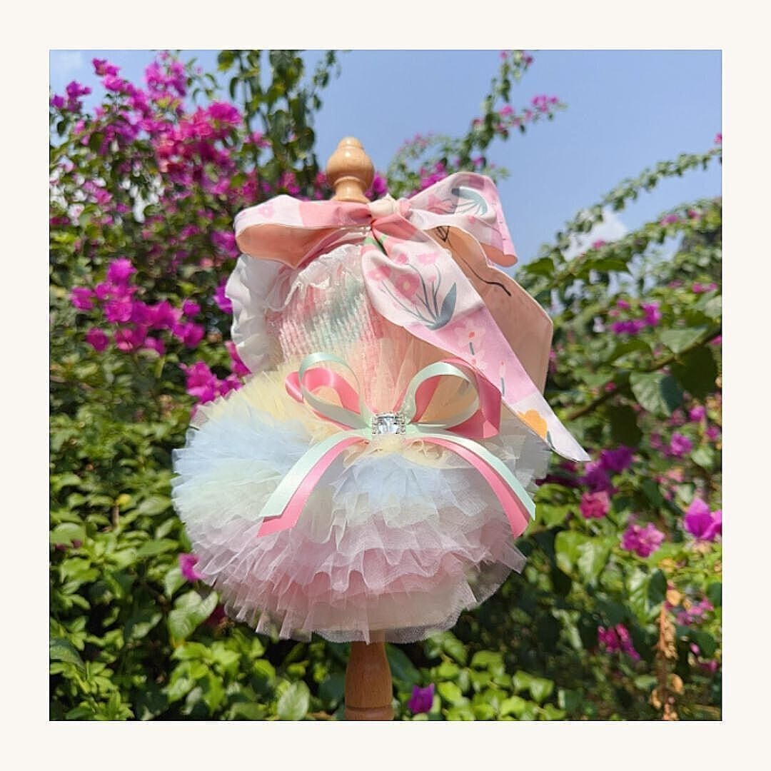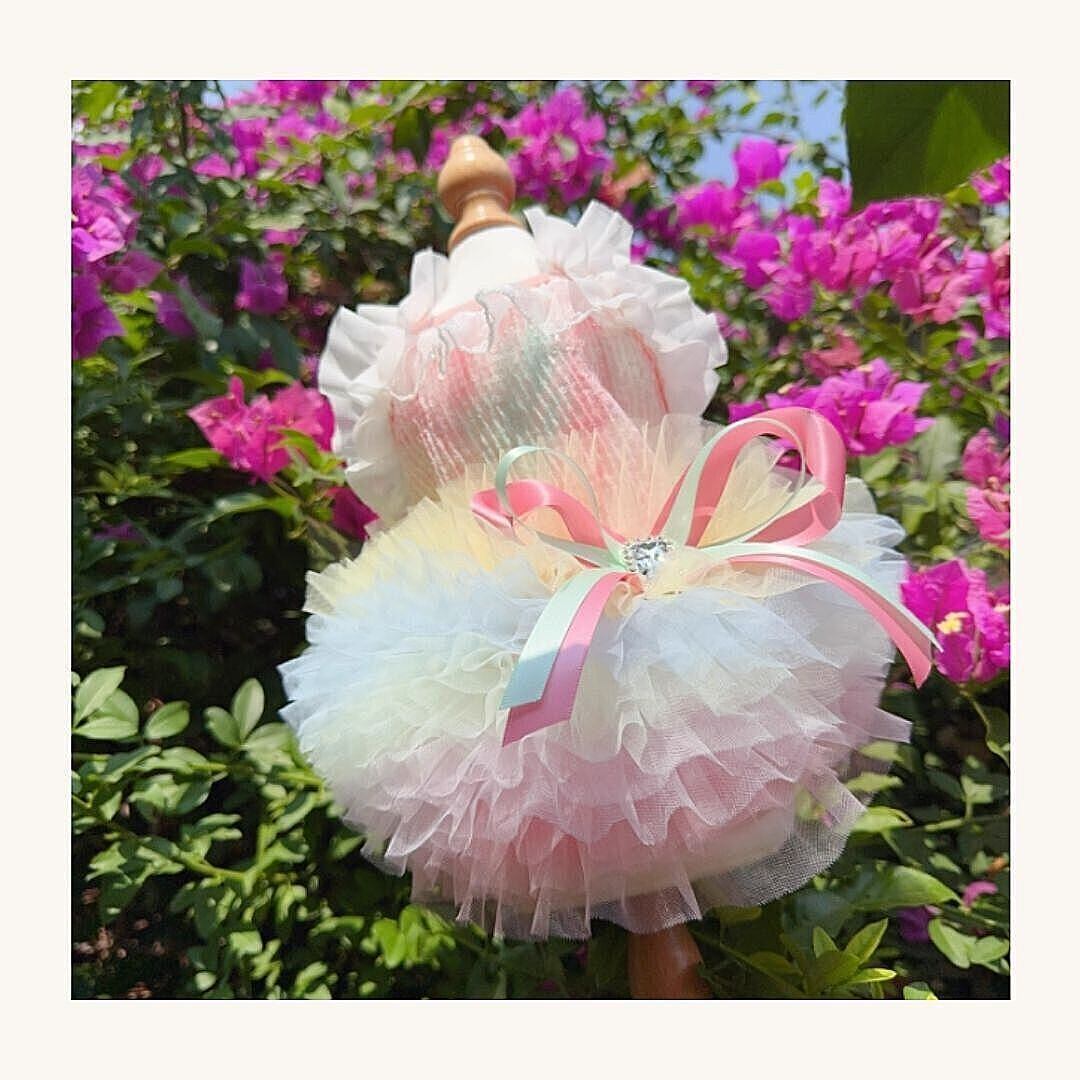 予約(海外ハンドメイド)【№B03929】レインボーカラー リボンモチーフ チュチュ ドレスワンピ