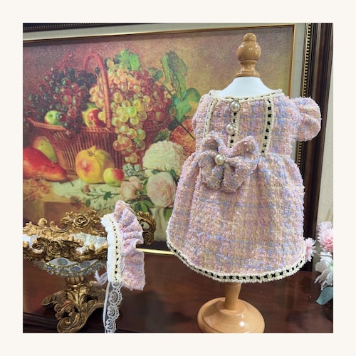 予約【№B04107】フライングスリーブ ツイードワンピ(ヘッドドレス:オプション)