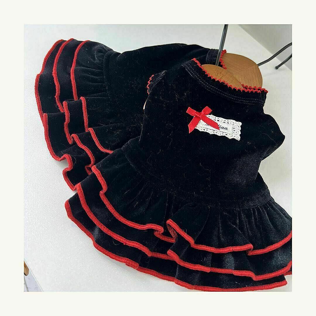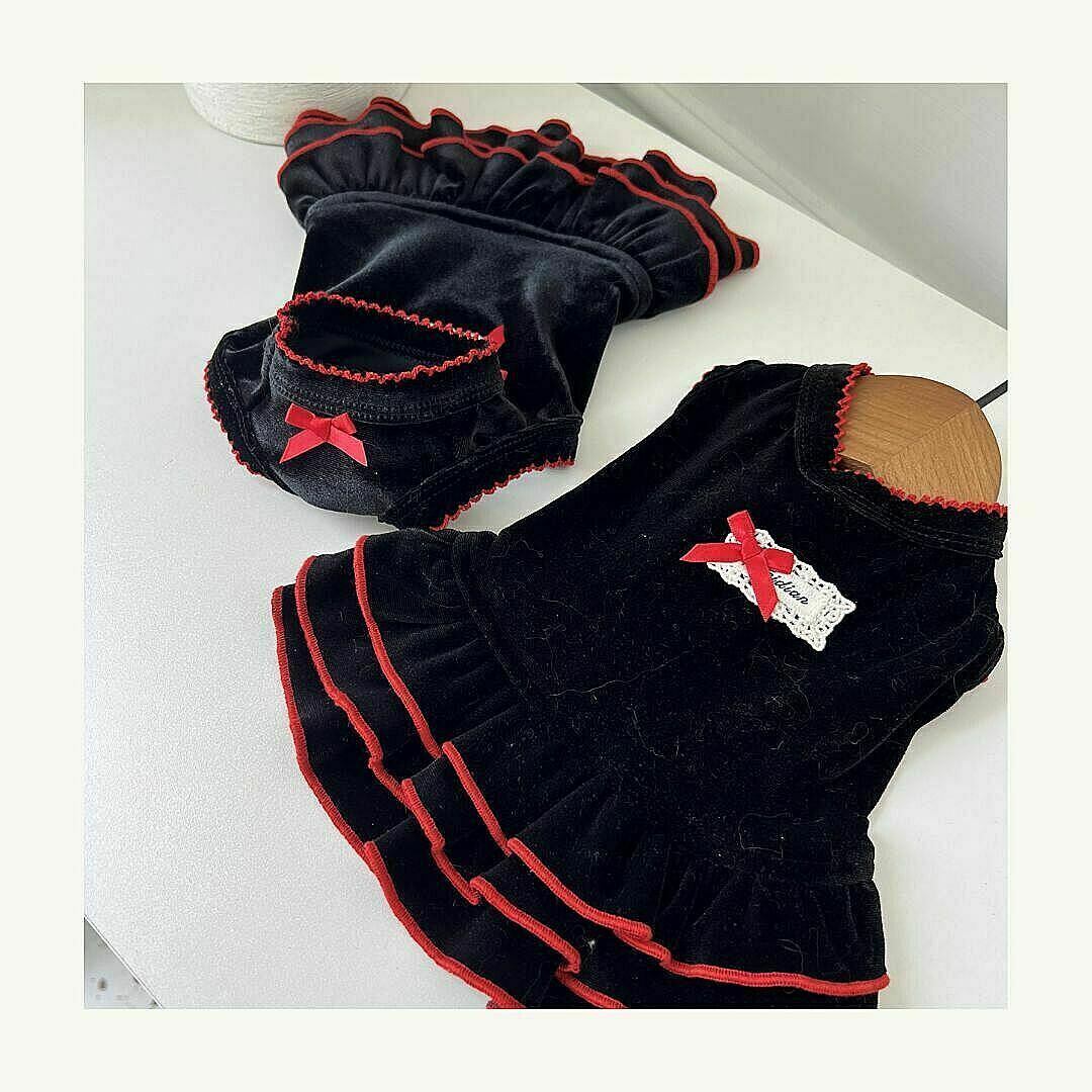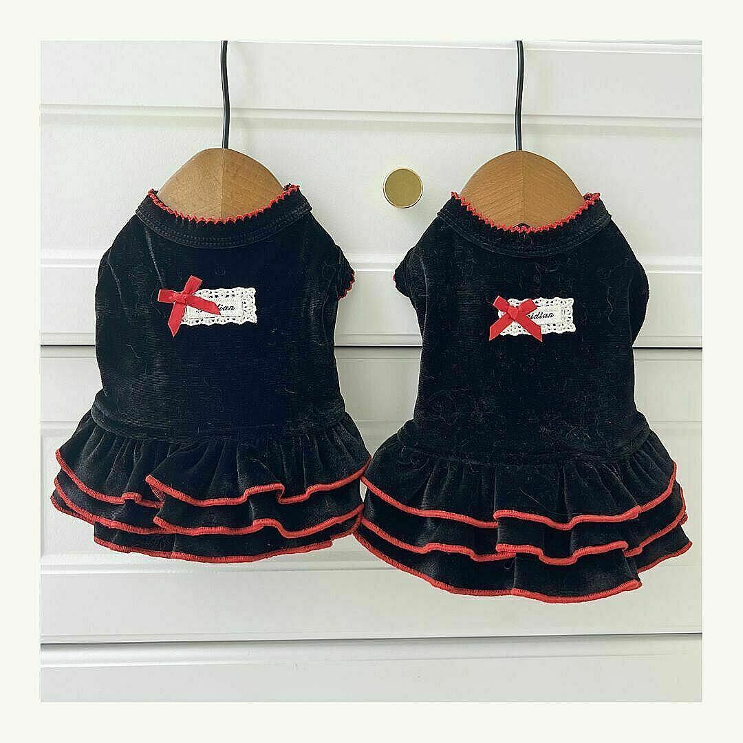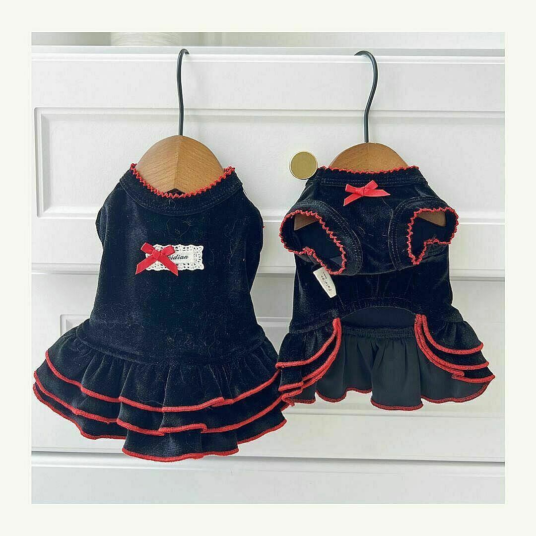 予約【№B04326-2】ブラック ベルベット フレアワンピ(単品)