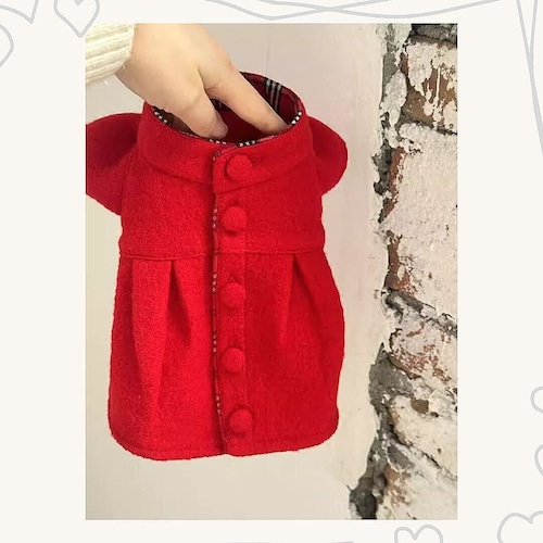 予約【№B04368】クラシックエレガント スタンドカラー レッドコートワンピ